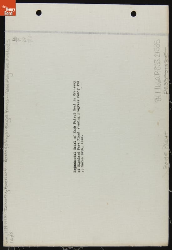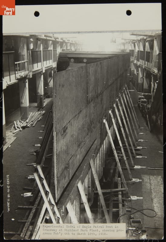 Progress on Prototype Eagle Patrol Boat, Ford Highland Park Plant Craneway, March 1918