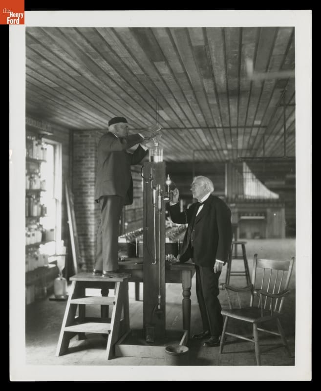 To celebrate the 50th anniversary of the incandescent electric lamp, Henry Ford hosted the Light's Golden Jubilee in Dearborn, Michigan. Ford chose the occasion to dedicate Greenfield Village to his friend, Thomas Edison. During the festivities, Edison and former assistant Francis Jehl re-enacted the first successful light bulb test (1879) in Greenfield Village's detailed reproduction of Edison's Menlo Park Laboratory.