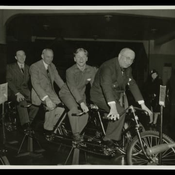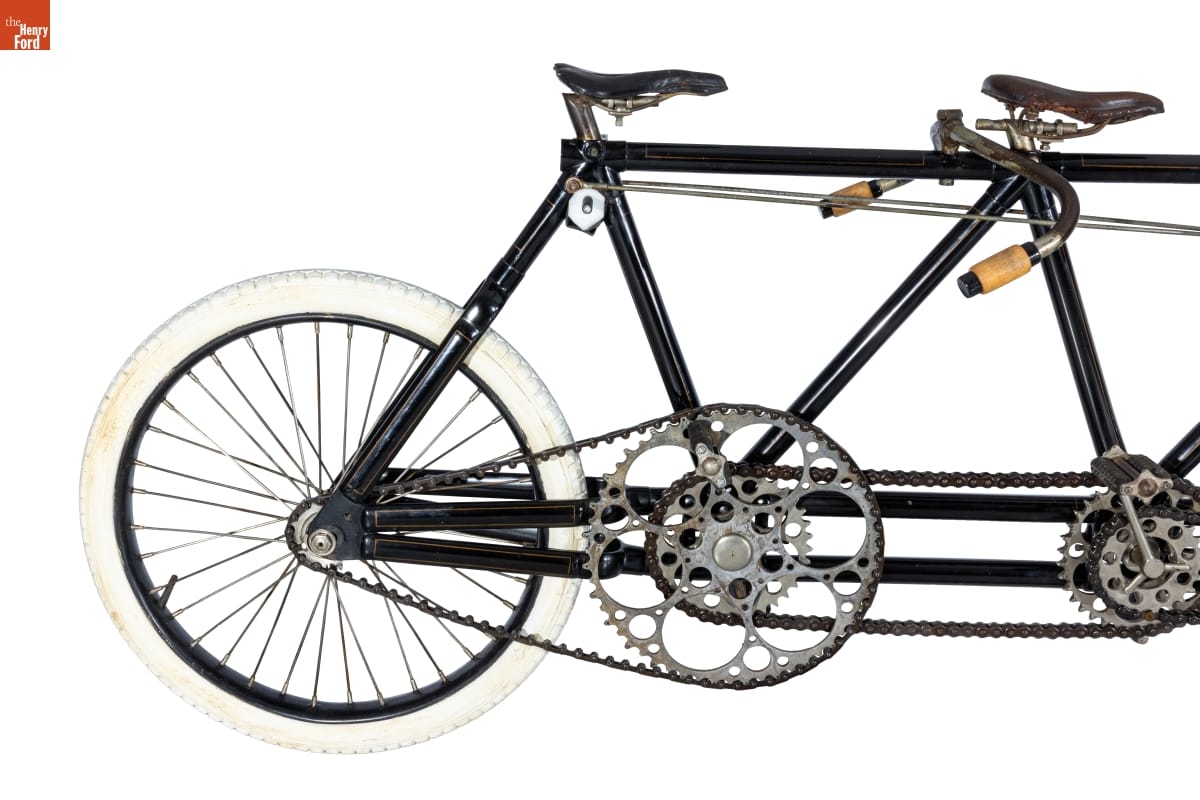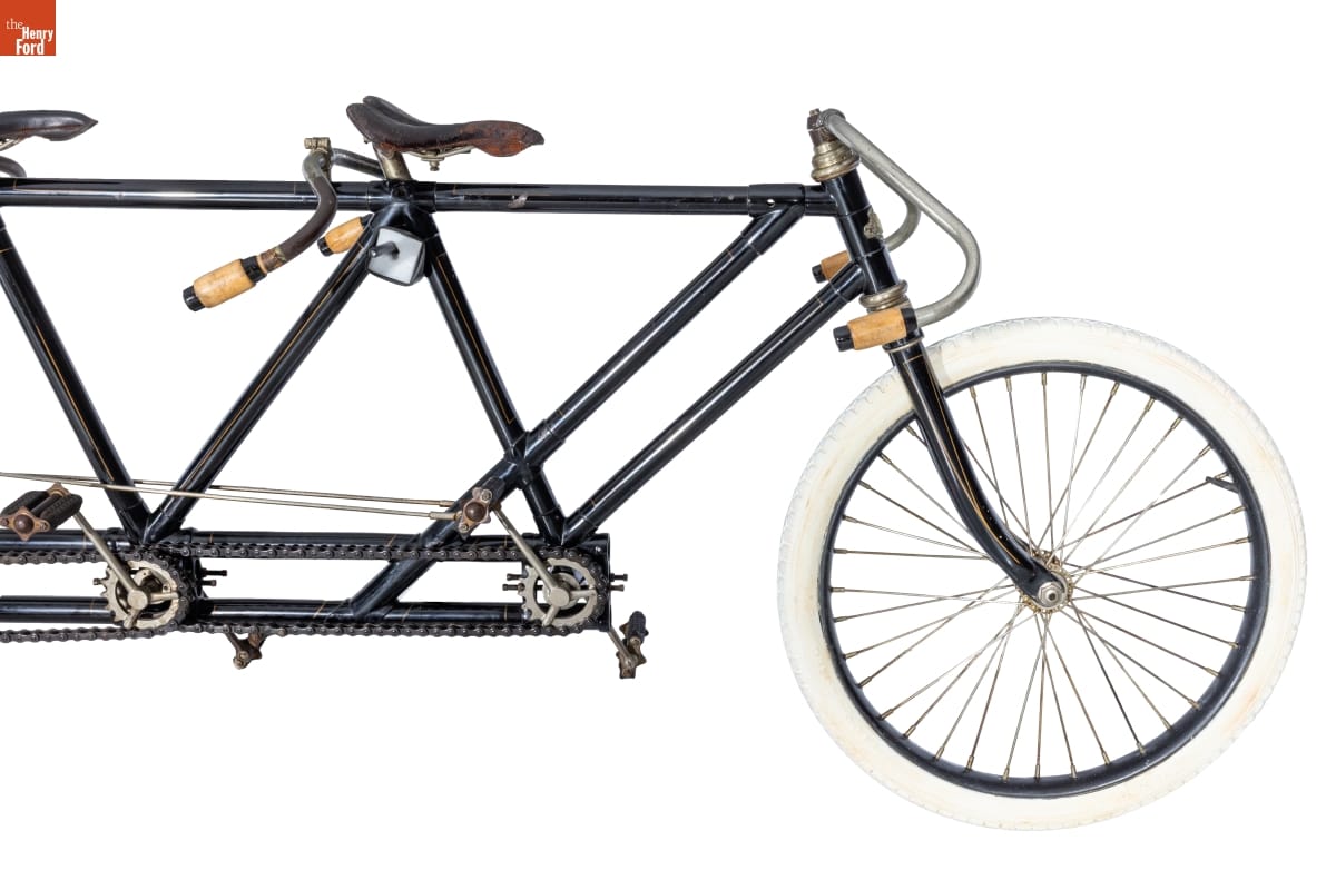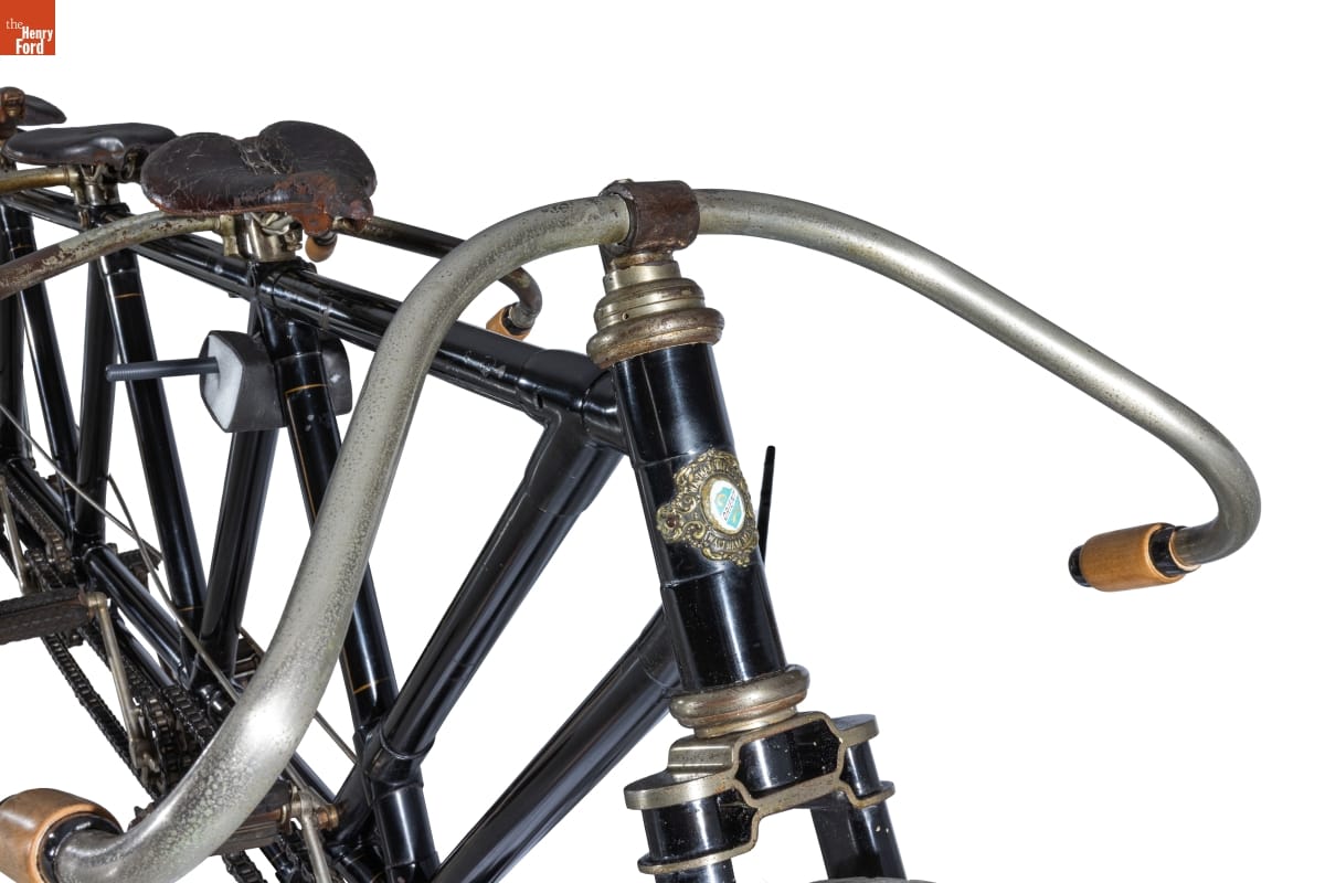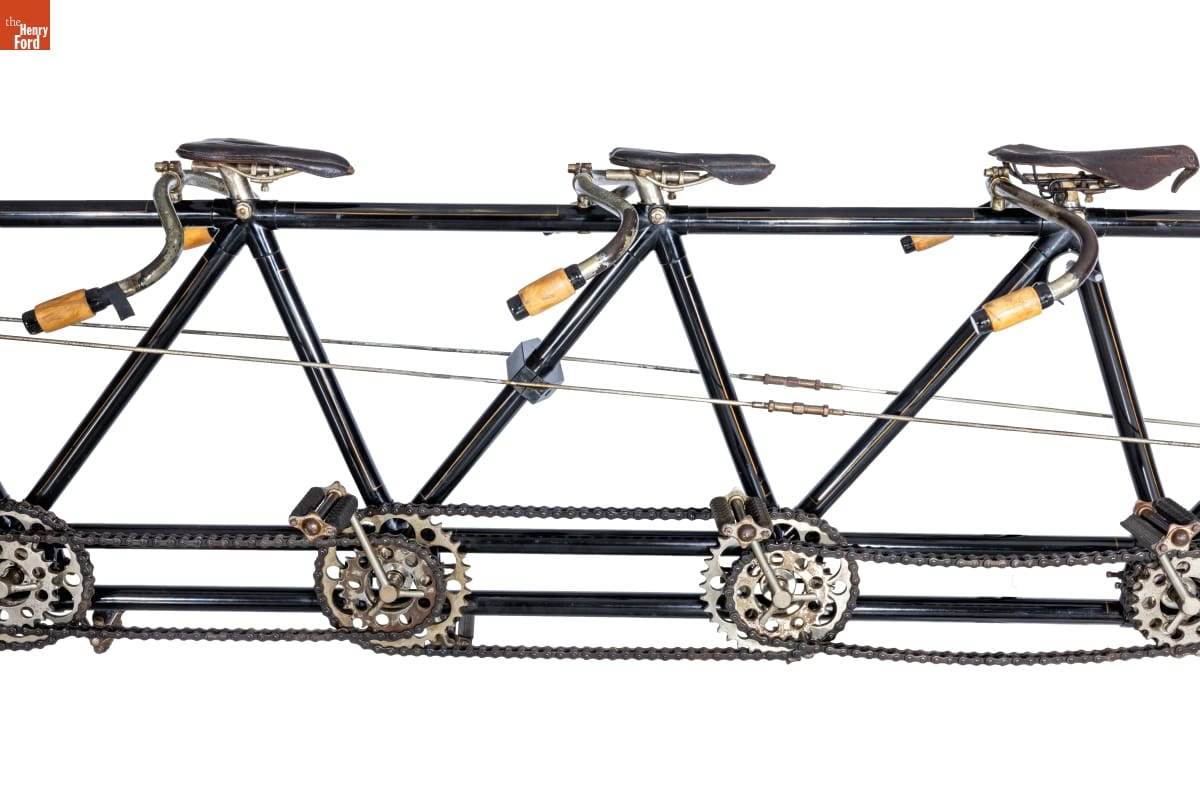 Charles Metz of Waltham, Massachusetts, built the Orient Oriten in 1896 as a way to promote his Orient line of bicycles. Metz featured this 23-foot-long, 305-pound ten-seater at bicycle meets and races throughout the country. Though difficult to ride, the vehicle could reach speeds of 45 miles per hour. The Henry Ford owns the only surviving Oriten.