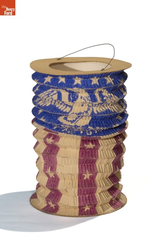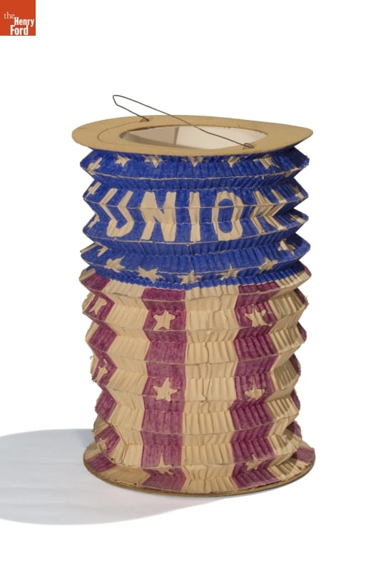 Late-nineteenth-century political parties rallied their supporters by holding torchlight parades. In the evening, marchers lit up the street carrying torches, lamps and lanterns. Inexpensive paper lanterns glowed with the image or name of the party's candidate or other patriotic imagery. Backers of the Union would proudly carry a lantern like this at parades during and just after the Civil War.