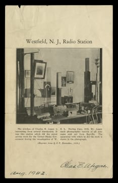 In 1915, amateur radio operator Charles Apgar detected coded messages being transmitted by German employees at Sayville Wireless Station, New Jersey. Apgar invented a device to capture these messages onto Edison wax cylinders--the earliest recordings of radio signals. National security was a major concern due to WWI, and Apgar's efforts convinced the U.S. government to seize the Sayville station.