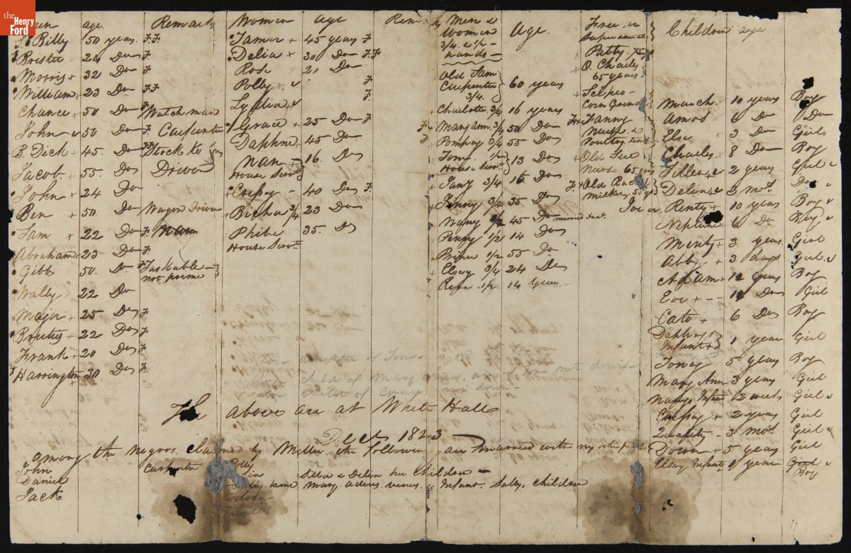 Inventory of Slaves from Mulberry Hill and White Hall Plantations, Bryan County, Georgia, December 1823