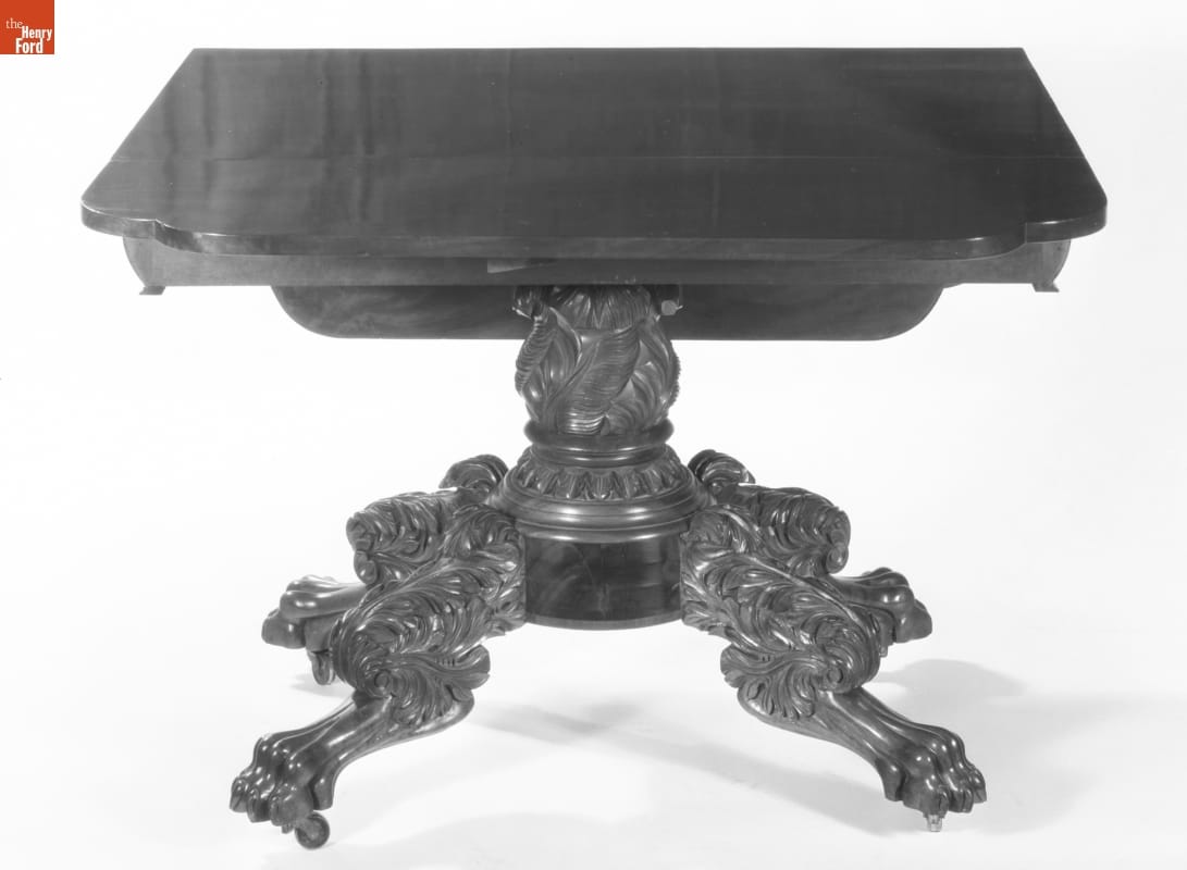 This table belonged to Mark Twain (1835-1910), American author and humorist whose real name was Samuel L. Clemens. The author wrote at this table during the later years of his life. Twain's daughter Clara gave it to Henry Ford, along with a portrait of her father.