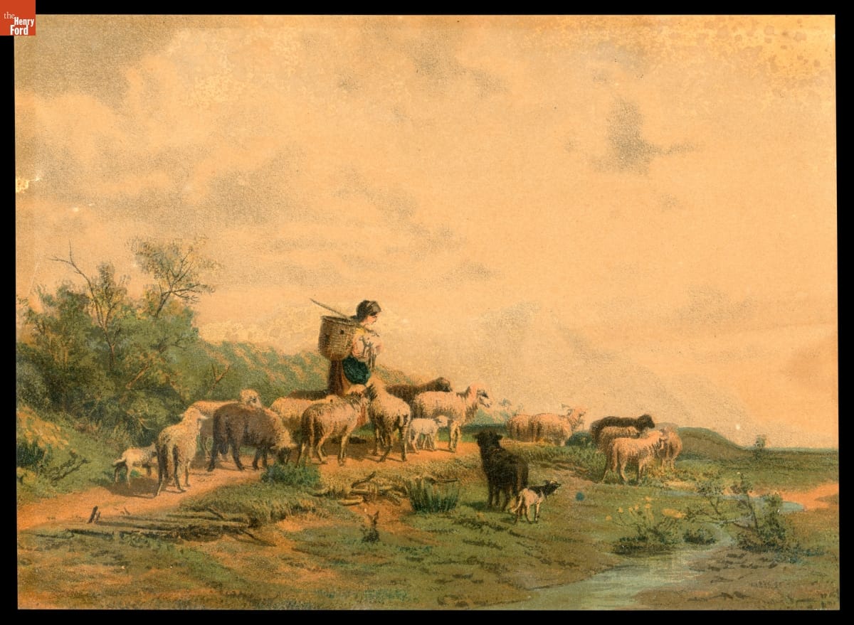 "Shepherd and Flock of Sheep," circa 1880