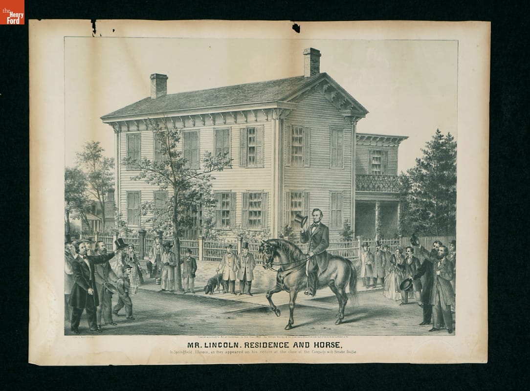 Lithograph, "Mr. Lincoln, Residence and Horse as They Appeared on His Return from the Campaign with Senator Douglas," 1858