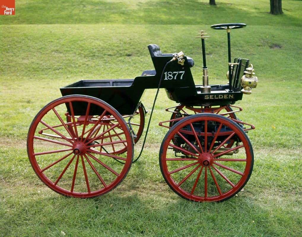 George Selden conceived -- but didn't build -- a gasoline-powered vehicle in 1877 and received a patent in 1895. The Association of Licensed Automobile Manufacturers enforced Selden's patent, but Henry Ford fought ALAM in court. Ford ultimately won, freeing the auto industry from paying royalties and making himself a folk hero. This car was completed for Selden in 1907 as evidence for the court.