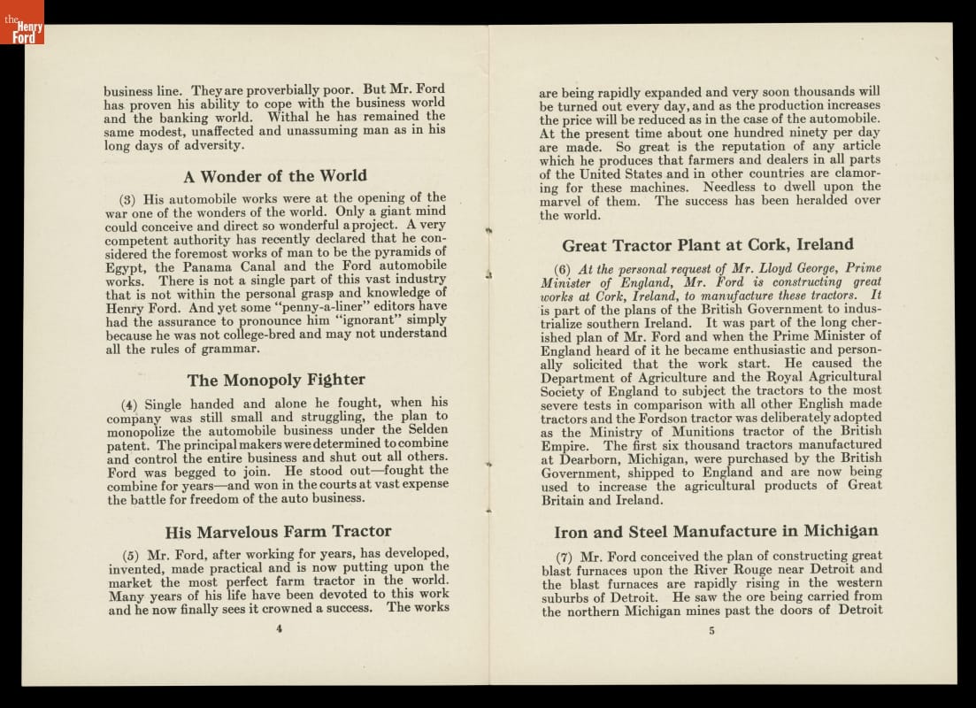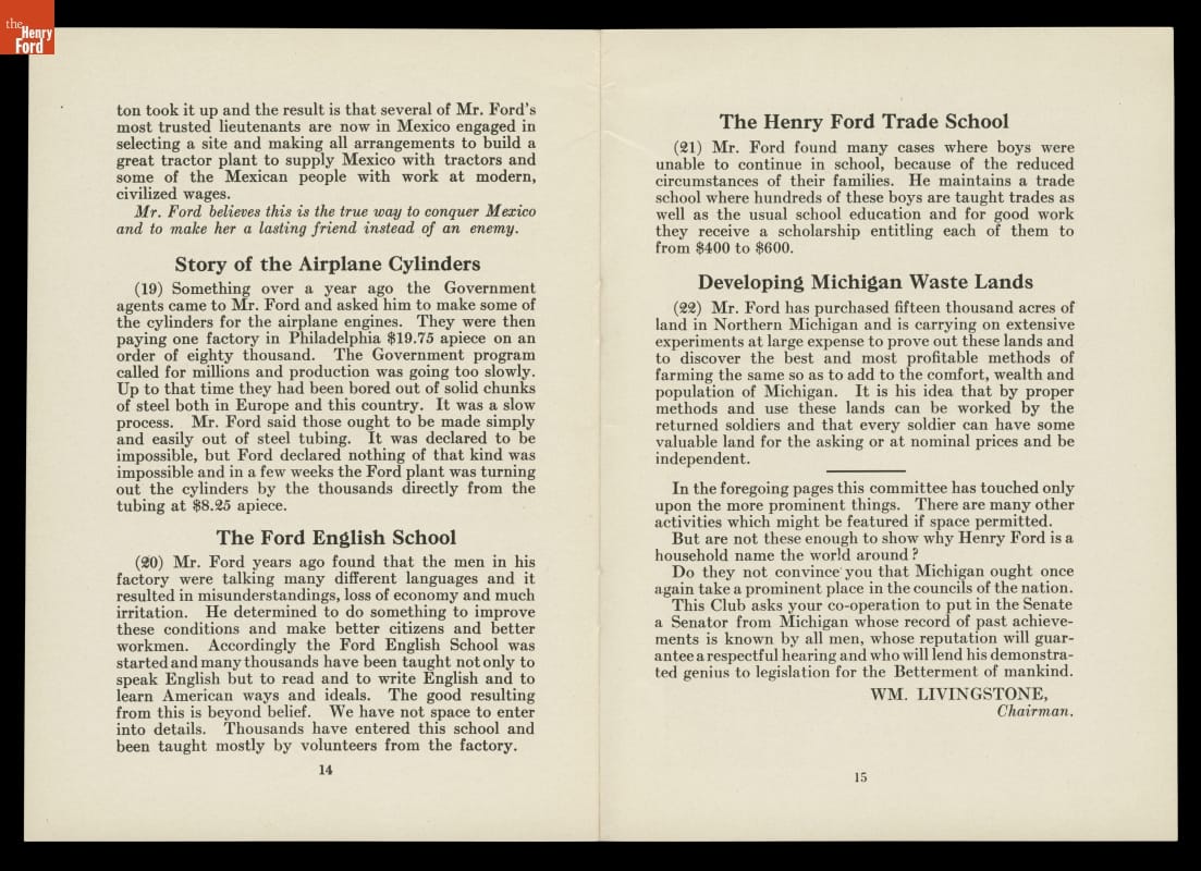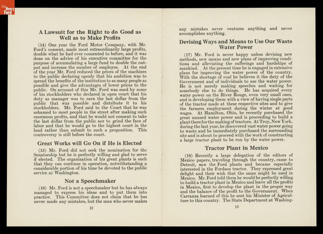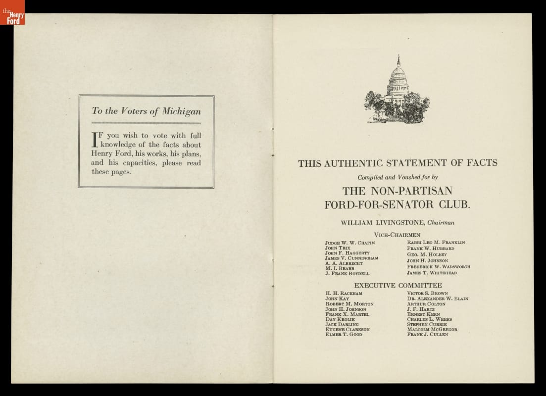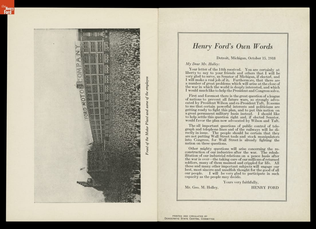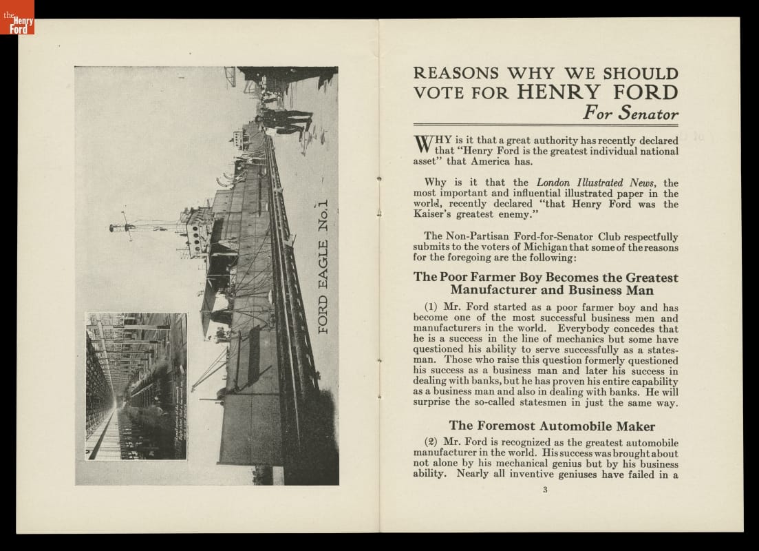 Campaign Brochure, "Henry Ford for United States Senator," 1918