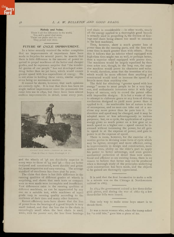 The League of American Wheelmen produced a weekly journal to promote good roads, and to highlight other issues of interest to American cyclists. This typical issue, from July 1898, contained news about the organization and its members. The journal also provided tour and safety information, poems, snapshots, and a host of bicycle advertisements for readers to enjoy.