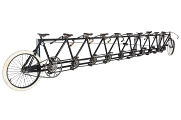 Edsel Ford, Henry Ford, Mickey Rooney and Louis B. Mayer on the 10-Man Orient "Oriten" Bicycle in Henry Ford Museum, 1940