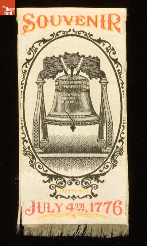 America's first official World's Fair celebrated the 100th anniversary of the signing of the Declaration of Independence. Around ten million people visited Philadelphia during the Centennial International Exhibition of 1876. Many returned home with mementos of the exposition, such as this woven silk bookmark depicting the Liberty Bell--an icon of American independence.