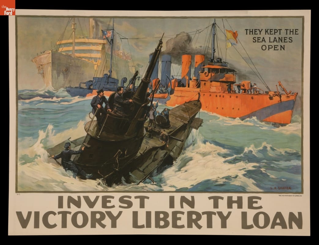 Printed on poster upper right corner: THEY KEPTTHE / SEA LANES OPEN / Printed under image: INVEST IN THE / VICTORY LIBERTY LOAN.
