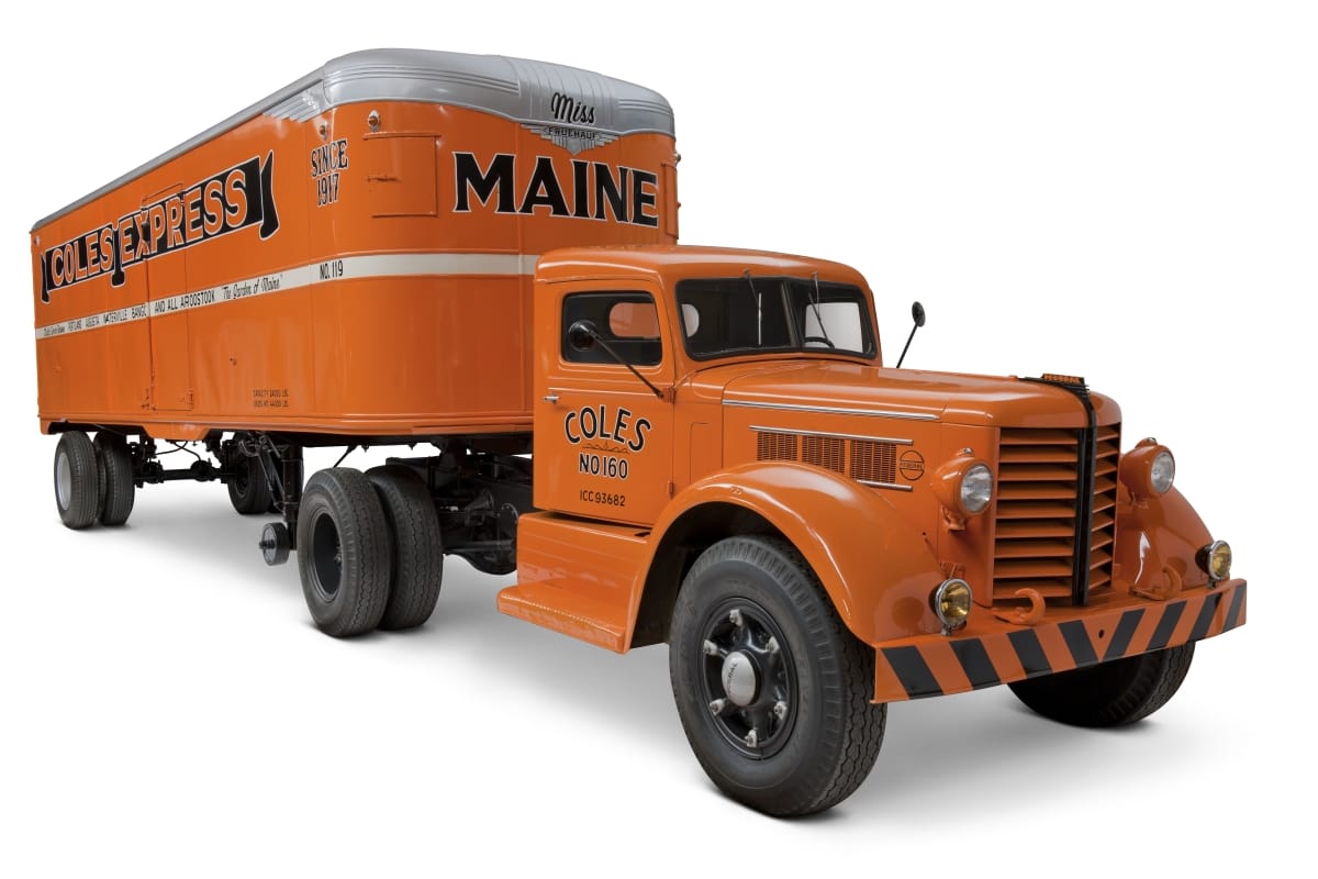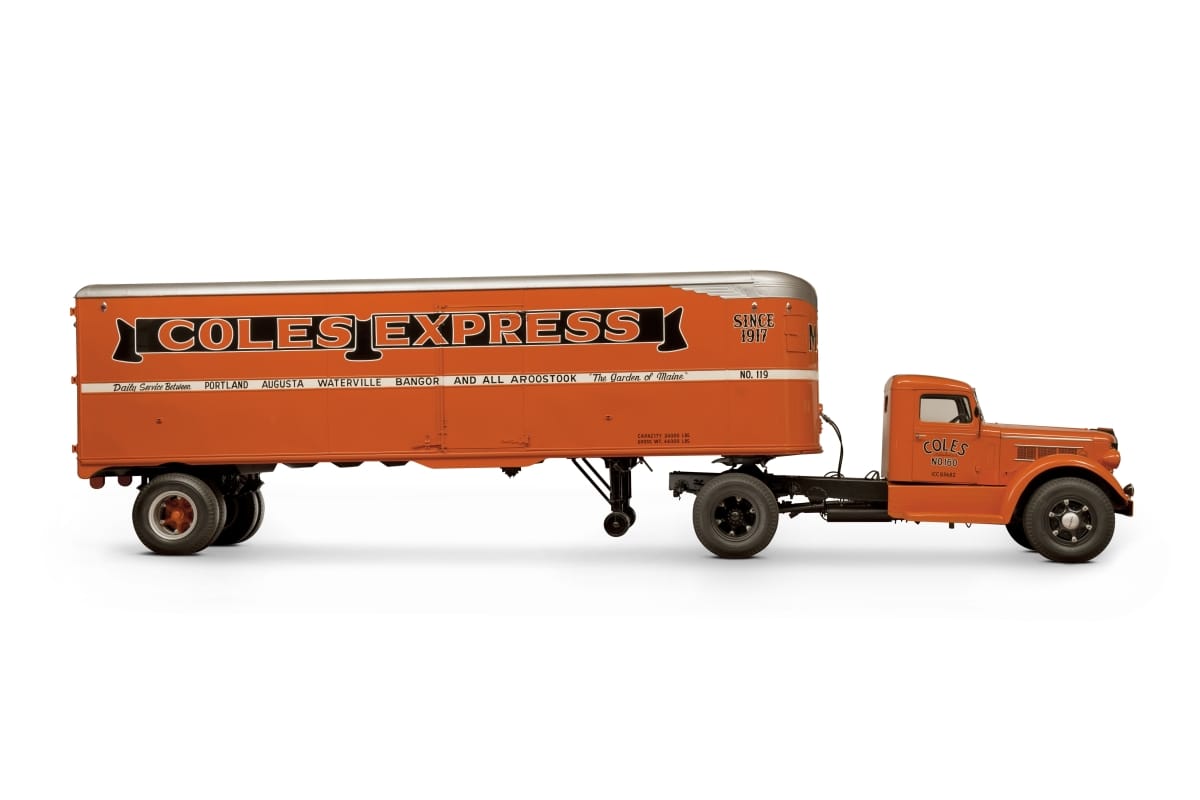 This 1946 Fruehauf Model FF Aerovan was a standard dry freight trailer of the industry during the 1940s. Purchased in early 1947 by The Goodwill Department Stores of North Wilkesboro, North Carolina, it was never used. It was repurchased by Fruehauf in 1973 and later donated to The Henry Ford. The trailer has been painted to create a typical post-World War II tractor-trailer unit used by the Coles Express, Inc. of Maine.