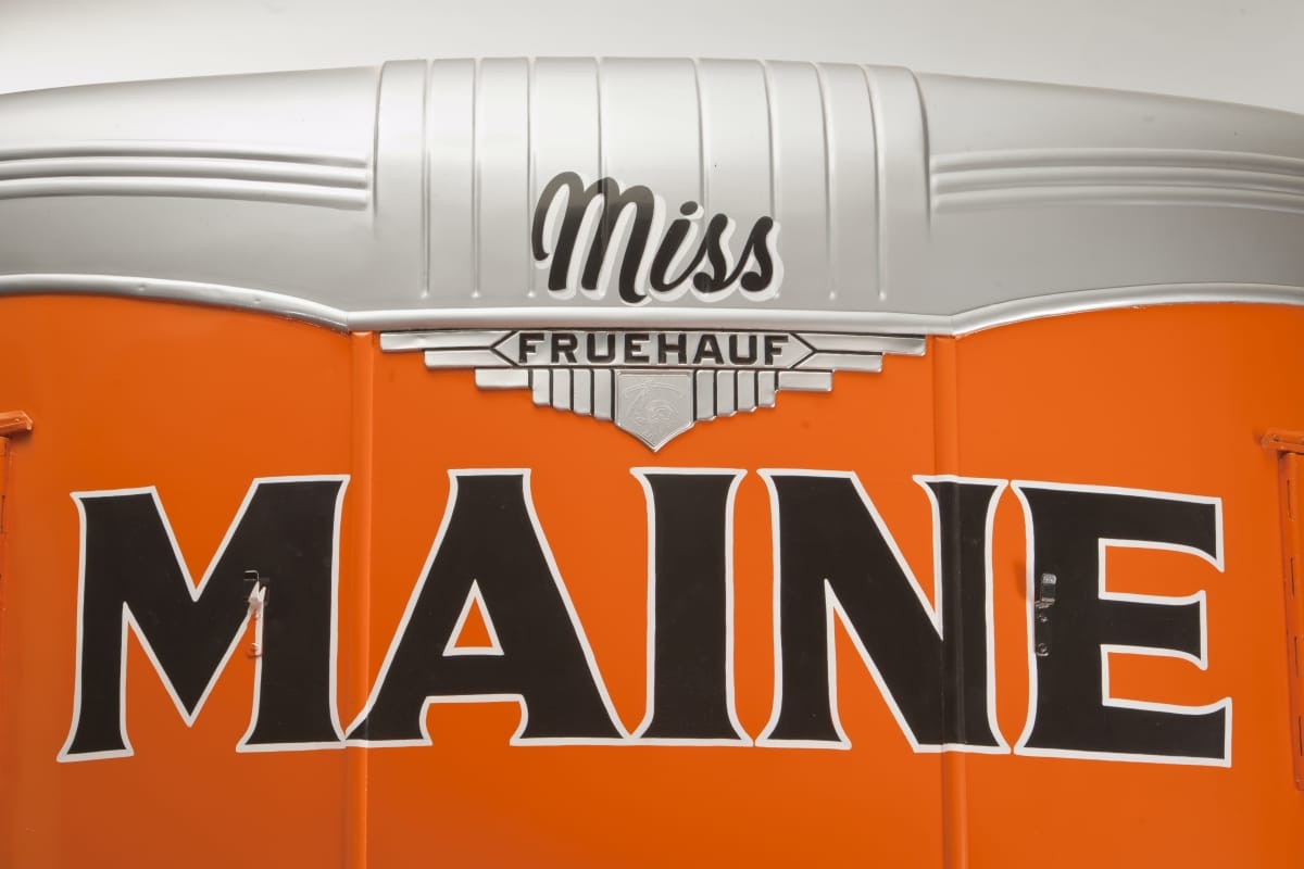 This 1946 Fruehauf Model FF Aerovan was a standard dry freight trailer during the 1940s. A freight trailer was a simple idea. Built with no front axle, the trailer's front is supported by a vehicle that pulls it, now called a tractor. This trailer has been painted to match the tractor used by the Coles Express, Inc., of Maine. …