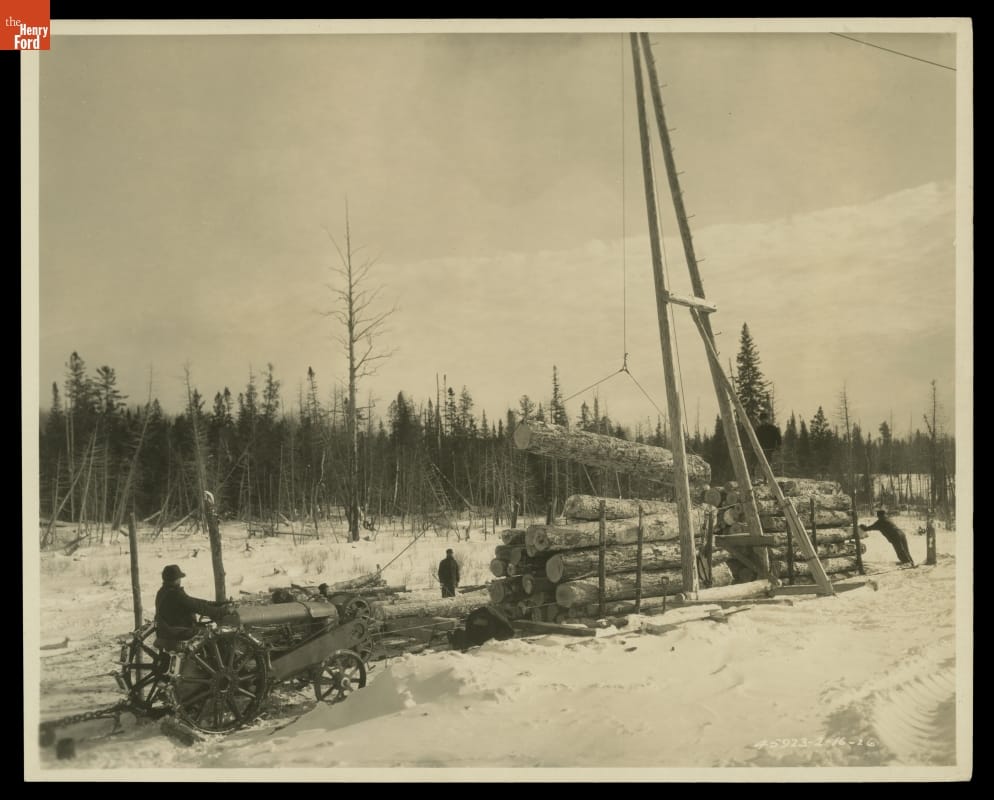 Fordson Tractor Loading Logs with Double Drum Hoist at L'Anse, Michigan, 1926