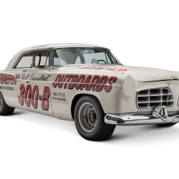 The Kiekhaefer racing team used this pit board to communicate with drivers during stock car races. Drivers could see brief messages chalked on the board as they sped past the pits. In this way, the team manager told drivers when to come in for gas or tires, or how far ahead or behind they were. Carl Kiekhaefer's Chrysler 300s dominated the NASCAR stock car circuit in 1955 and 1956.
