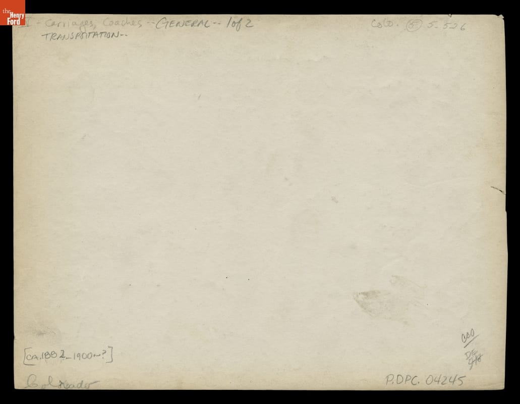 On lower edge front: 04245 START FROM DOLORES FOR THE SAN JUAN Lower right hand corner front reads: DETROIT PHOTOGRAPHIC CO. On verso: In pencil: Colorado