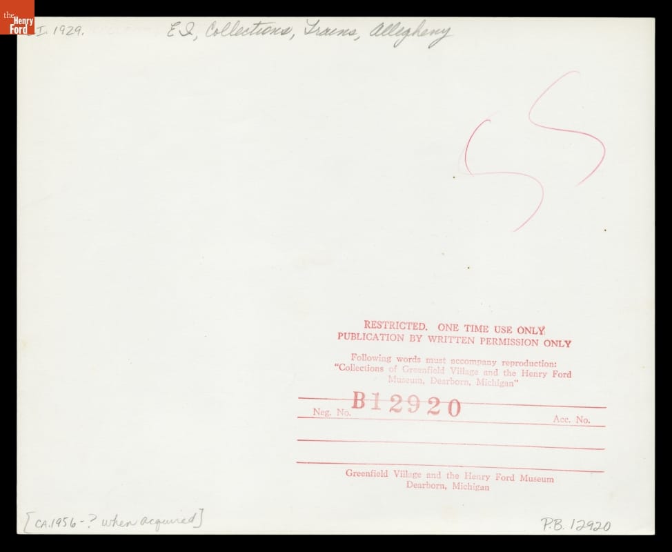Photo taken by the Henry Ford Museum Photographic Department, Dearborn, Michigan