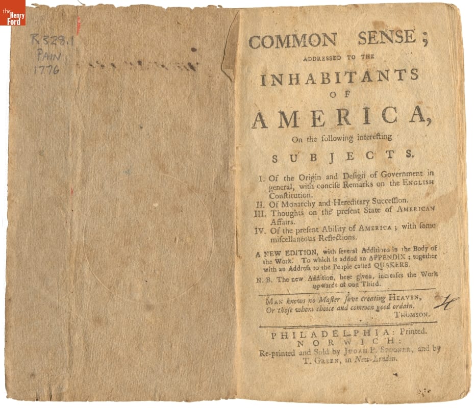 "Common Sense; Addressed to the Inhabitants of America," February 1776