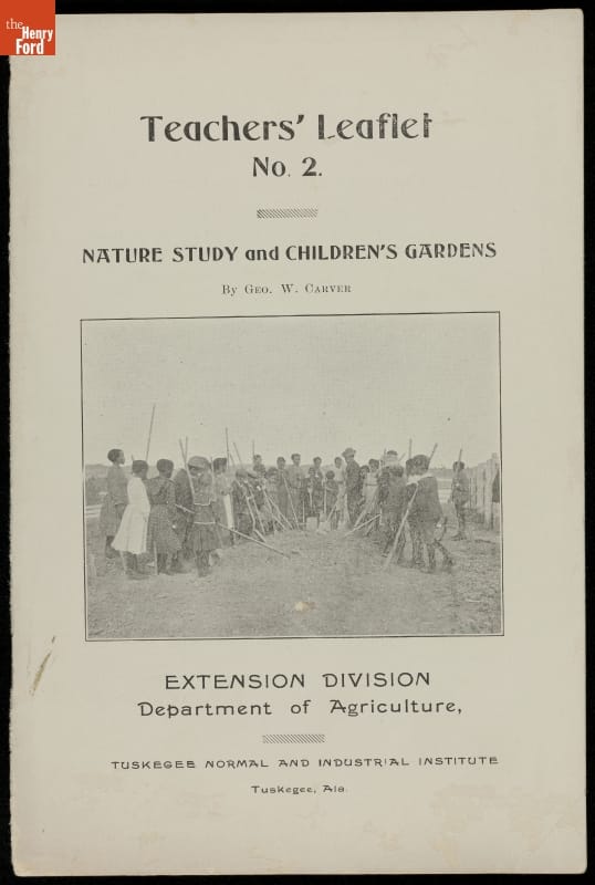 Among George Washington Carver's contributions were the bulletins he issued from the Agricultural Experiment Station at the Tuskegee Institute. This pamphlet, written for teachers, treats the popular topic of "nature study," the early 20th century's version of environmental education. It was a guide for educators wanting to involve school children in gardening to help prepare them for successful farming careers. Carver's nature study bulletins emphasized both aesthetic and scientific understandings of nature and were popular across the country.