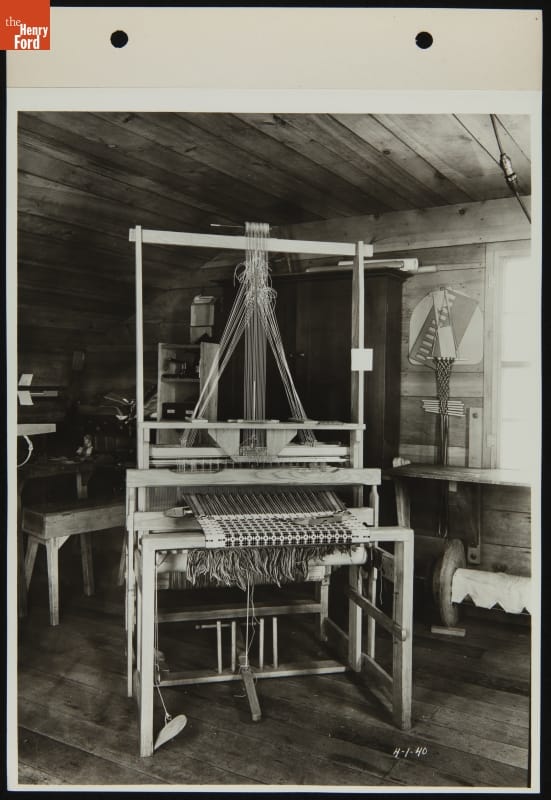 Draw Loom inside Gunsolly Carding Mill in Greenfield Village, April 1, 1940