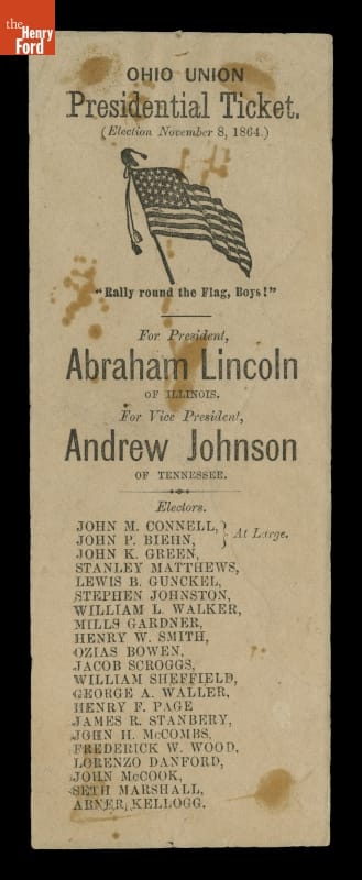 Ohio National Union Party Ticket for the 1864 Presidential Election