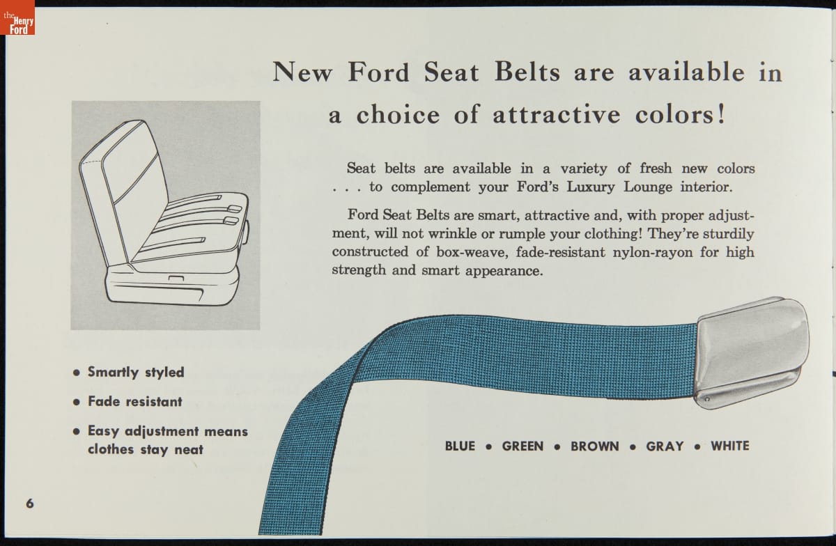 "New Ford Seat Belts, an Important Feature of Ford Lifeguard Design," 1956
