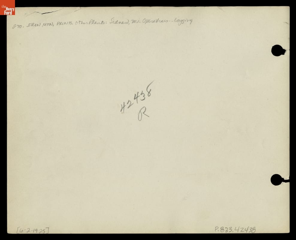 In pursuit of self-sufficient automobile manufacture, Henry Ford and Ford Motor Company purchased over 313,000 acres of timberland for logging in the Upper Peninsula of Michigan. Ford built a large lumber camp in Sidnaw, where well-fed, well-dressed, and well-housed lumberjacks like this worker harvested mature trees. The wood would be made into automobile parts at a plant 65 miles southeast.