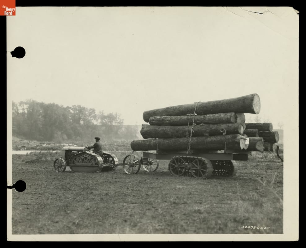 Logging Operations with Tractor and Log Hauling Trailer, Michigan, 1925