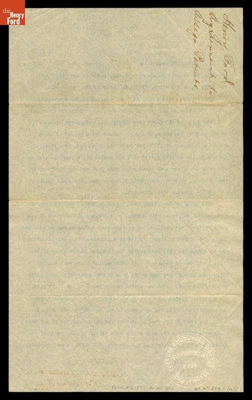 Henry Ford's first company was the Detroit Automobile Company. Aside from letterhead paper, a few photographs, some newspaper clippings, and this document, nothing remains of it. This agreement stipulates Henry's job as Mechanical Superintendent. In his early years Henry was not the actual president. In this case C.A. Black was president. The company failed because it offered a poor vehicle.