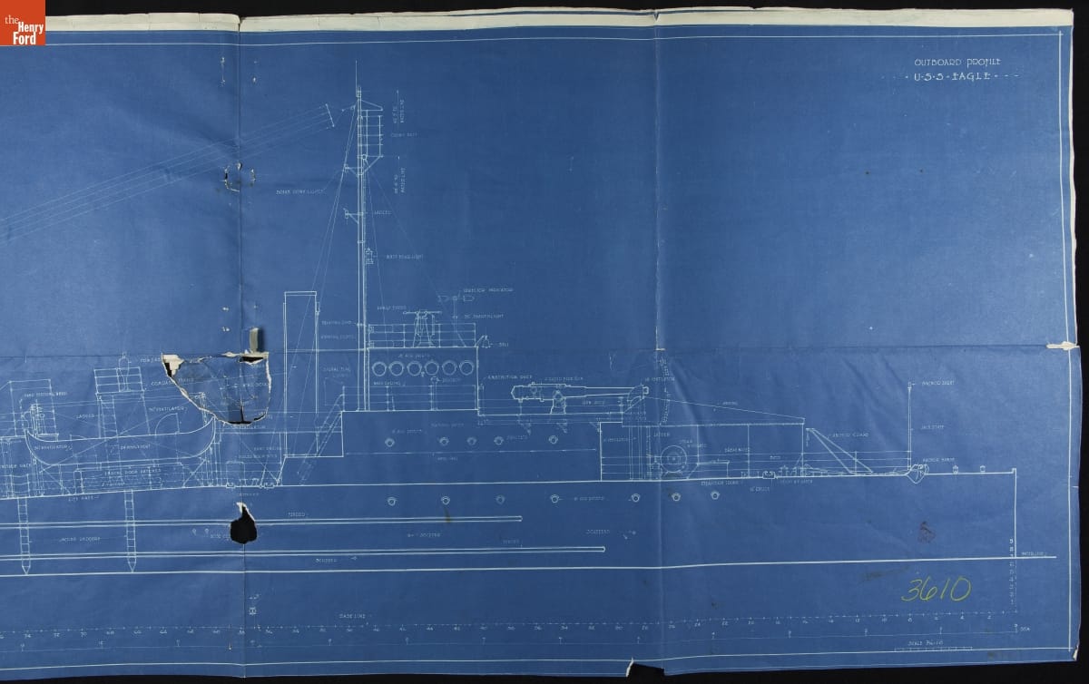 Text at upper right corner: OUTBOARD PROFILE / U.S.S. EAGLE