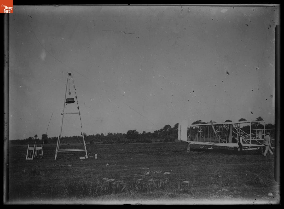Wright Flyer Connected to Launching Derrick, France, 1908-1909