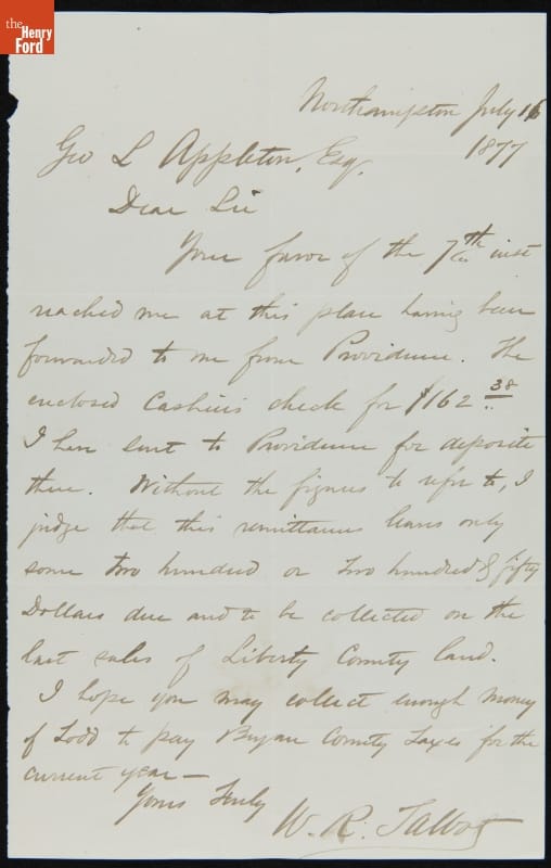 Letter from William Talbot to George Appleton, July 16, 1877
