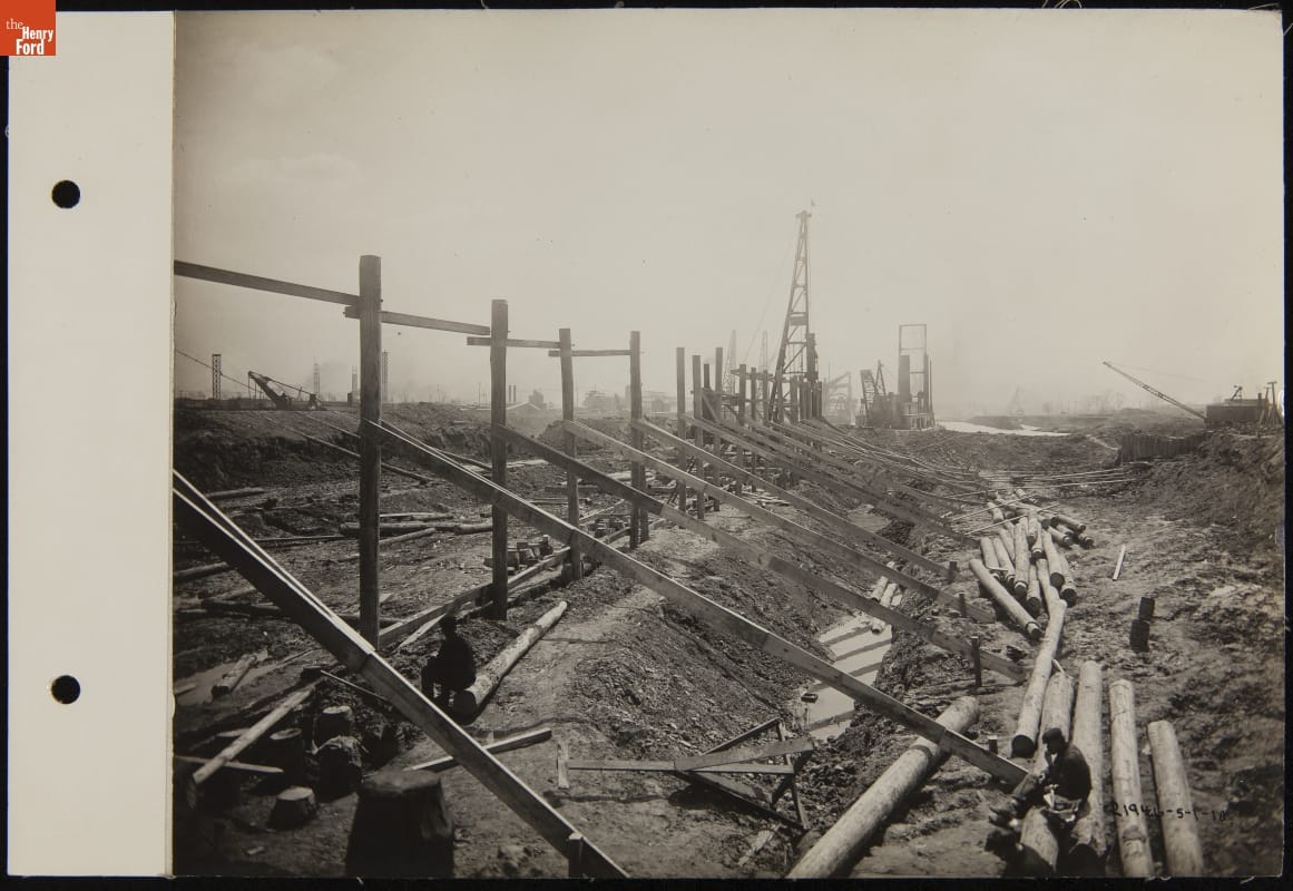Henry Ford started purchasing land near the mouth of the Rouge River in 1915. He envisioned a new factory complex with access to water transportation and room to grow -- two things missing at Ford's Highland Park plant. Construction of the new Rouge factory started in 1917 and, in a sense, never stopped during Henry Ford's lifetime. Improvements and additions were constant.