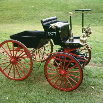 George Selden conceived -- but didn't build -- a self-propelled gasoline-powered vehicle in 1877 and patented the idea in 1895. The Association of Licensed Automobile Manufacturers enforced Selden's patent, but Henry Ford fought ALAM in court. This car was completed for Selden in 1907 as evidence for the legal battle. Ford ultimately won, freeing himself and other automakers from paying royalties to ALAM.