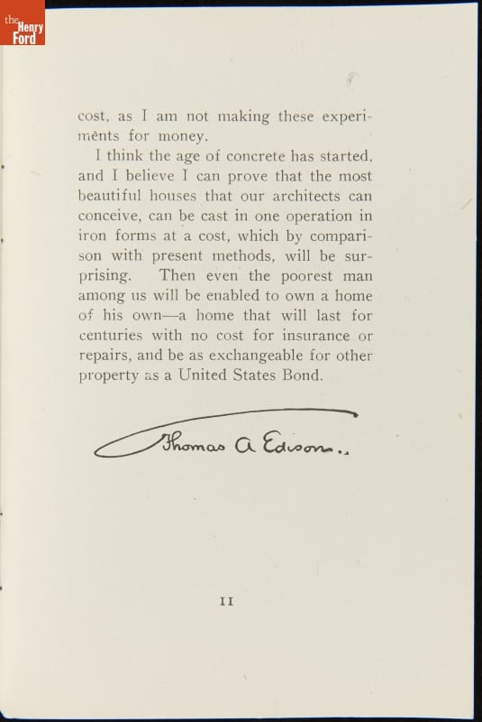 In 1899, after a failed attempt at ore mining, Thomas Edison formed the Edison Portland Cement Company. At his plant, Edison combined his mining operation's rock-crushing technology with new machinery he developed, like a more efficient cement kiln. These innovations drove overproduction in the cement industry, leading Edison to propose a radical use for the excess product -- concrete houses for working class families.