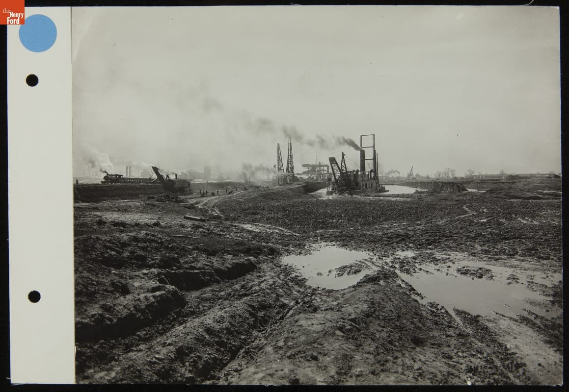 Henry Ford began buying land near the mouth of the Rouge River in 1915. Ford was thinking of future expansion. His new property was on level ground, near multiple railroad lines, and -- after dredging -- within navigable reach of the Detroit River and the Great Lakes. In 1918, the site became home to Ford's Eagle anti-submarine patrol boat factory.