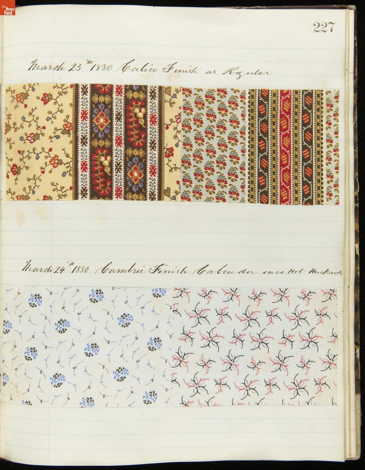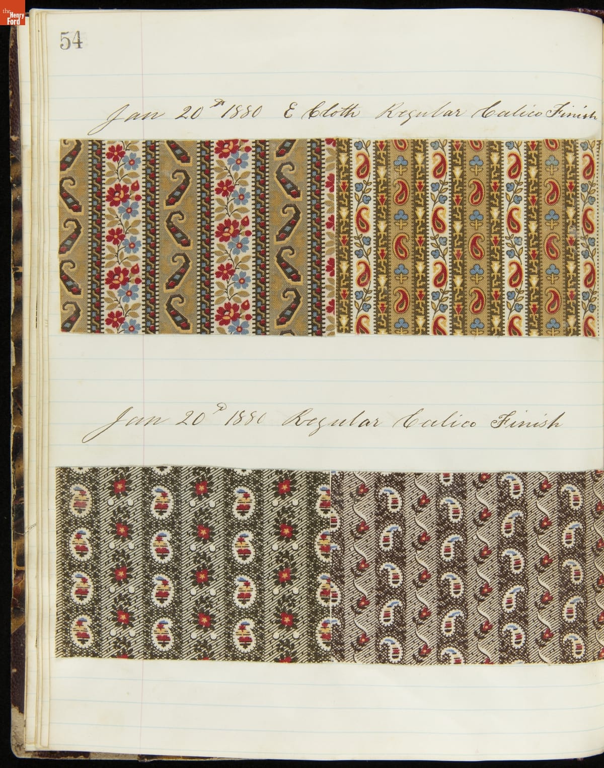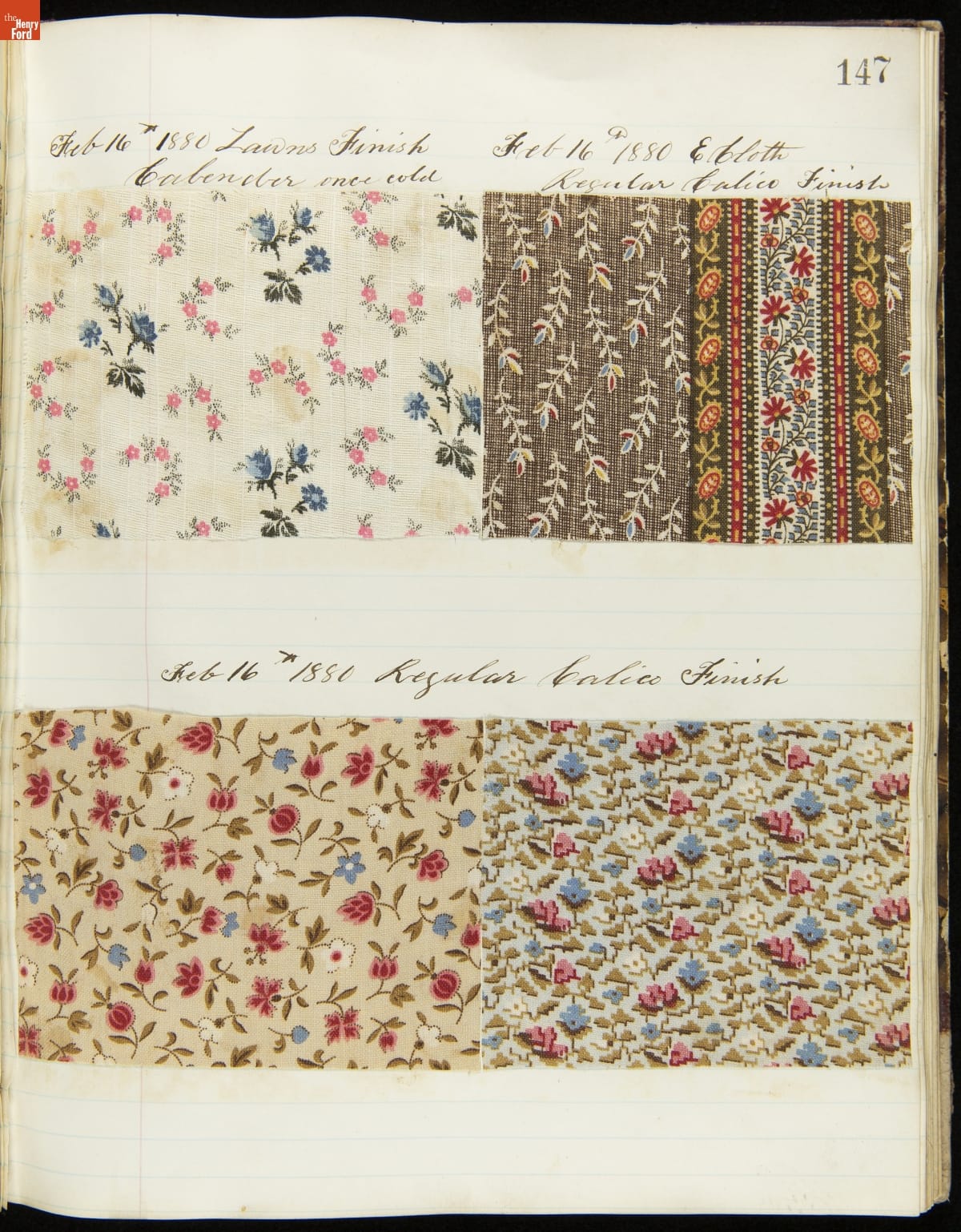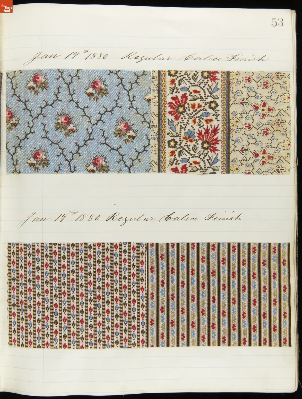 During the 19th century, New England textile mills manufactured billions of yards of fabric for the mass market, producing roller-printed cottons using increasingly complex mechanized processes. Colorful cotton prints, like those made by Cocheco Manufacturing Company, became affordable to almost everyone.