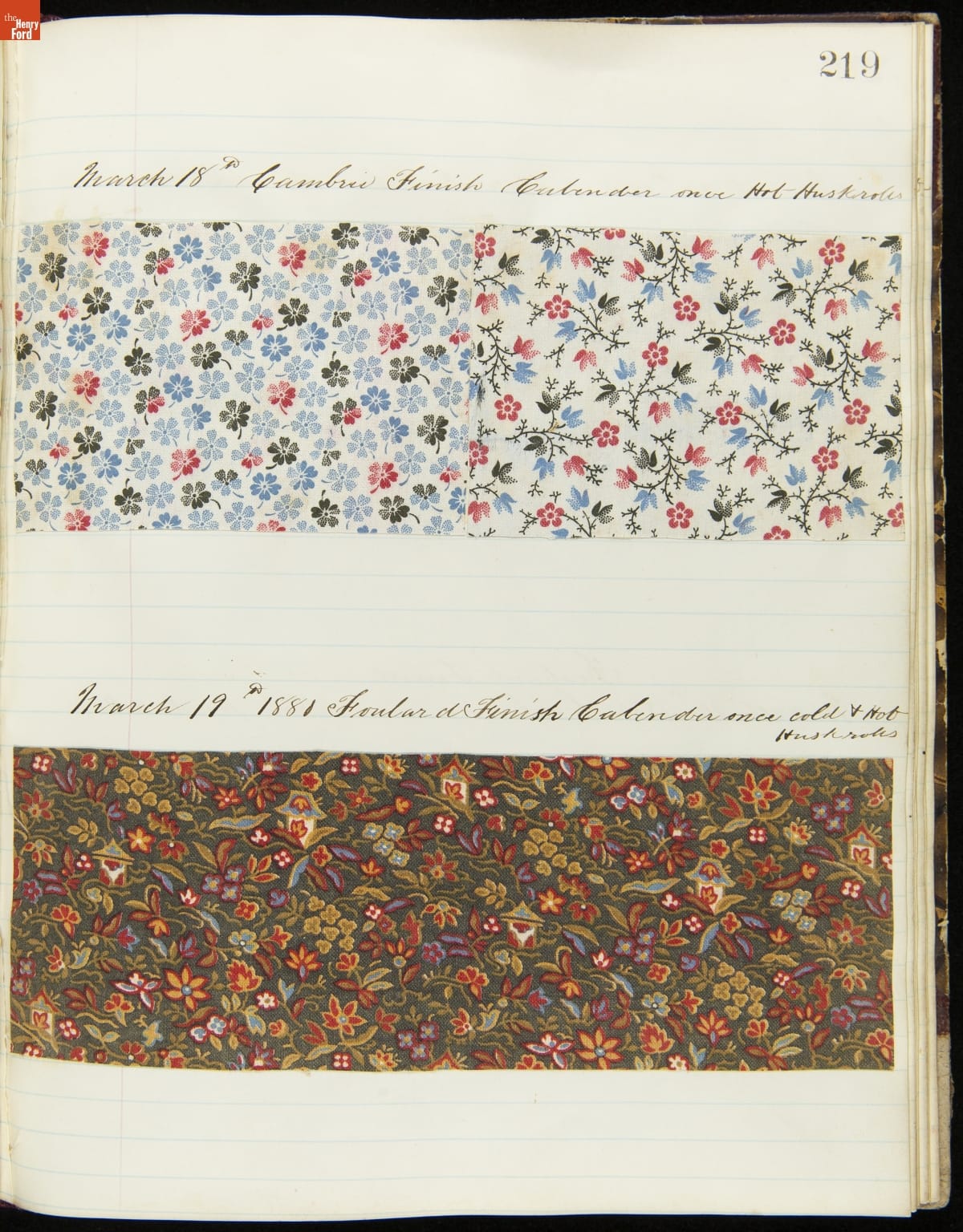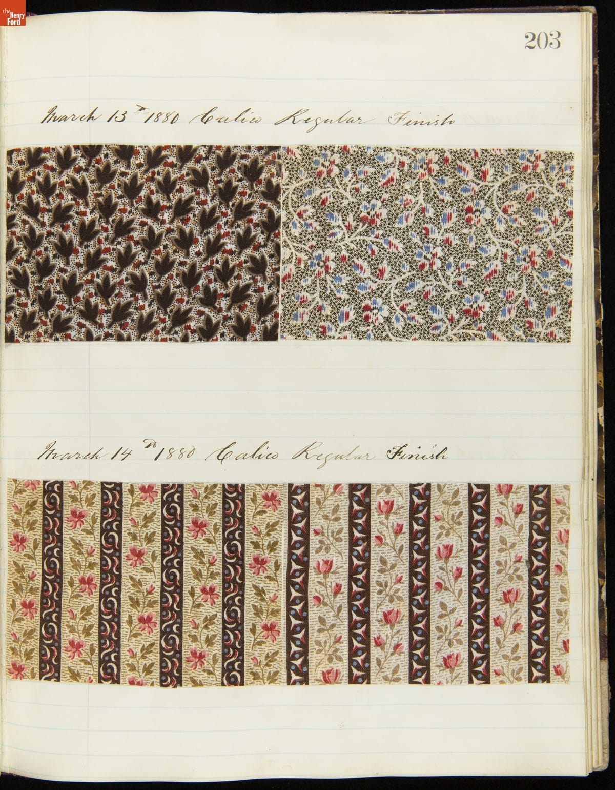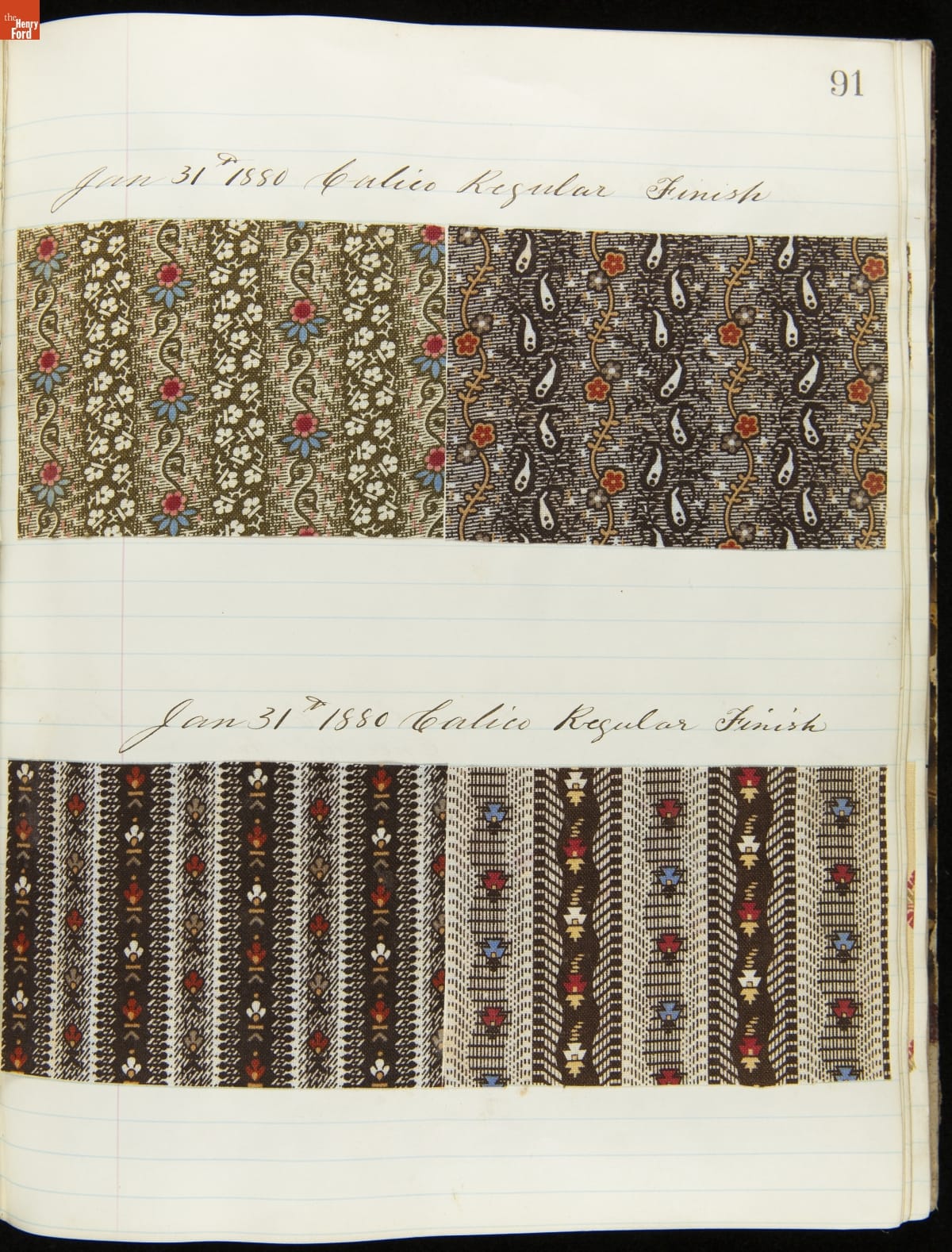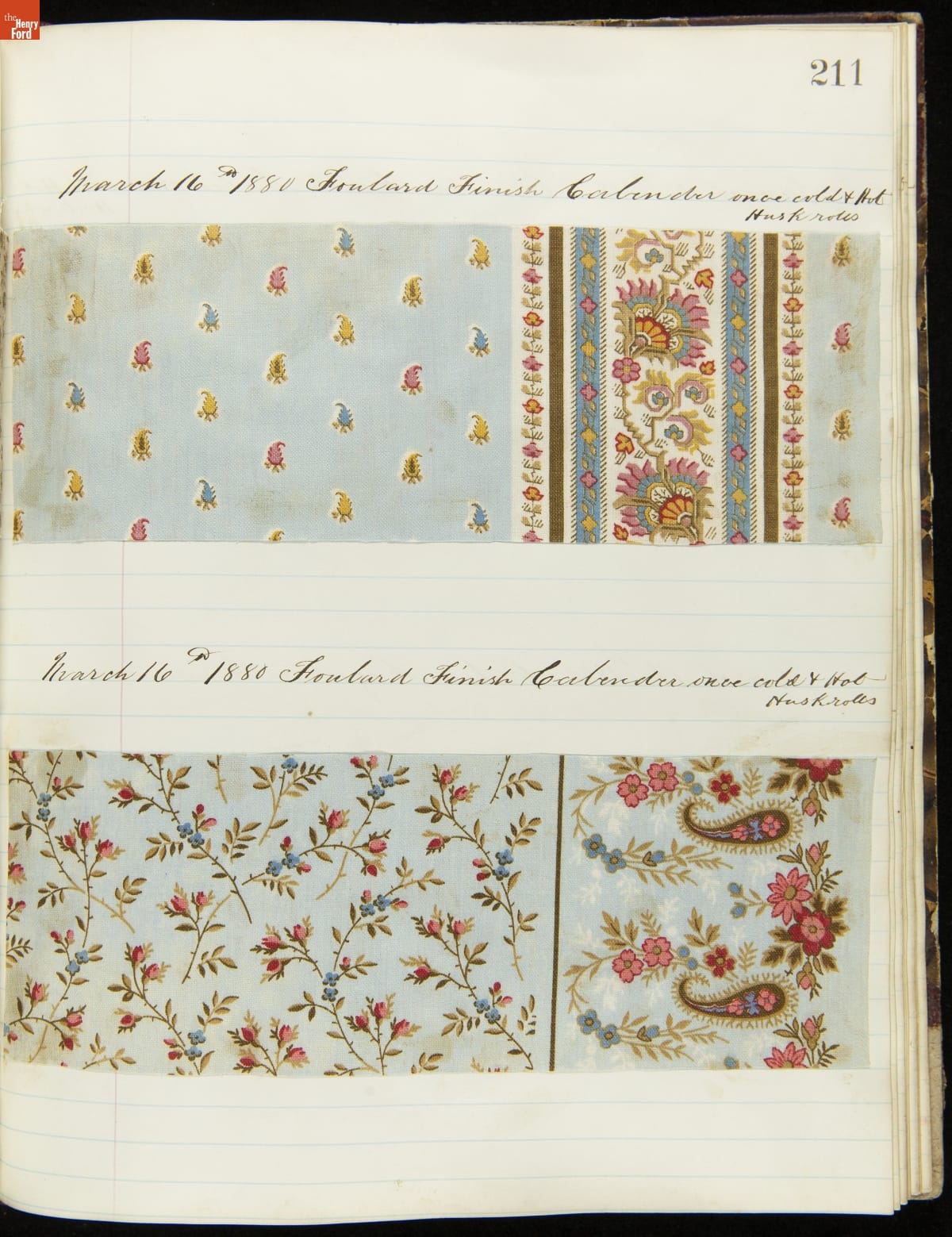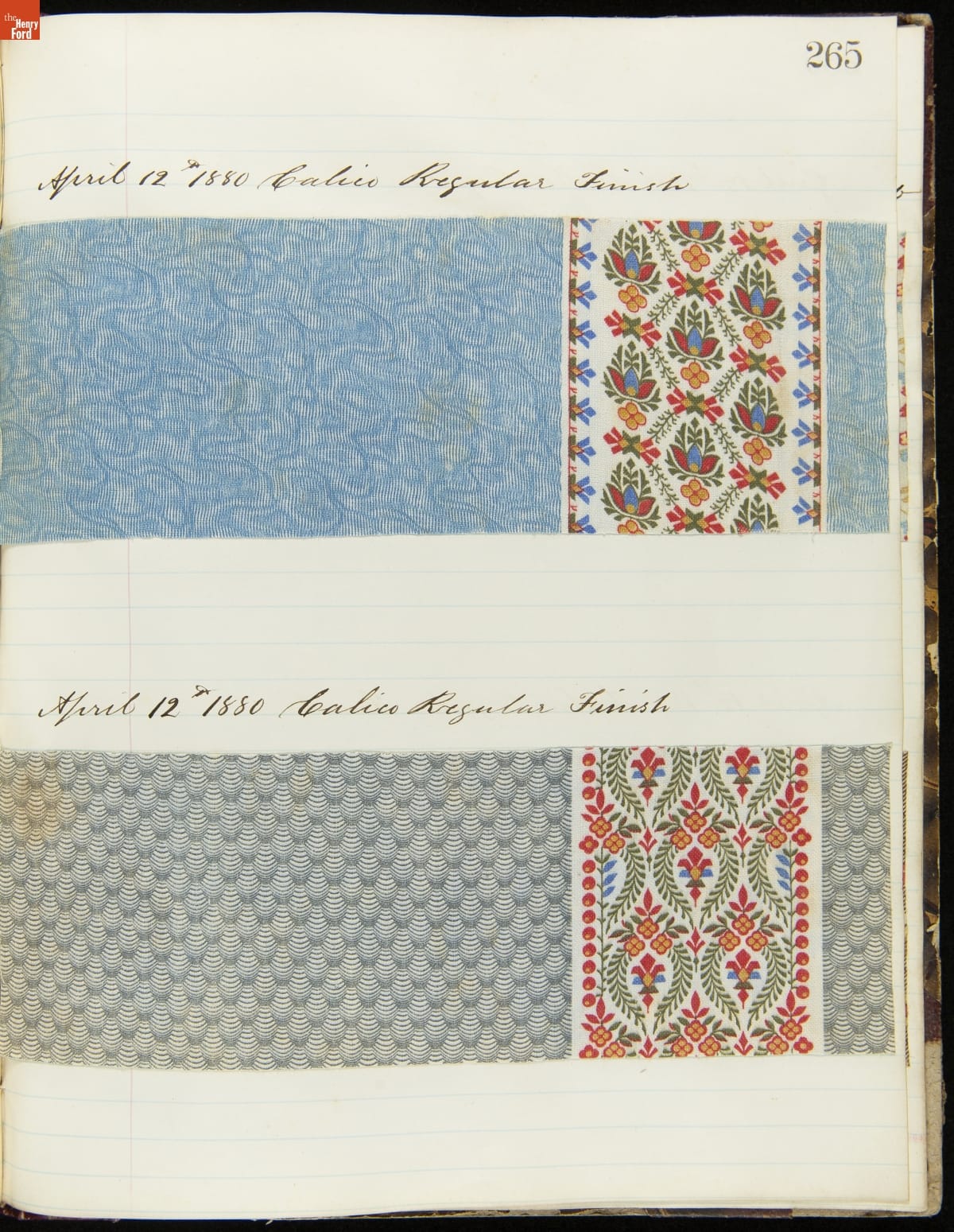 During the 19th century, New England textile mills manufactured billions of yards of fabric for the mass market, producing roller-printed cottons using increasingly complex mechanized processes. Colorful cotton prints, like those made by Cocheco Manufacturing Company, became affordable to almost everyone.