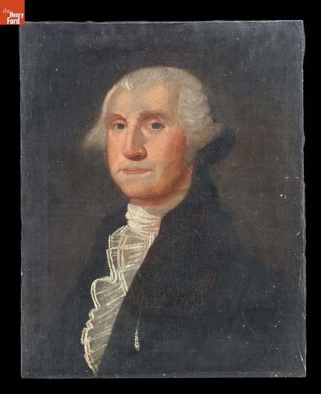 George Washington (1732-1799) was revered during his lifetime. In death, Washington became an enduring symbol of the struggle for liberty and the new American republic. This early nineteenth-century portrait of the statesman -- painted by an unknown artist after a famous painting by portraitist Gilbert Stuart -- would have hung in a home or public building.