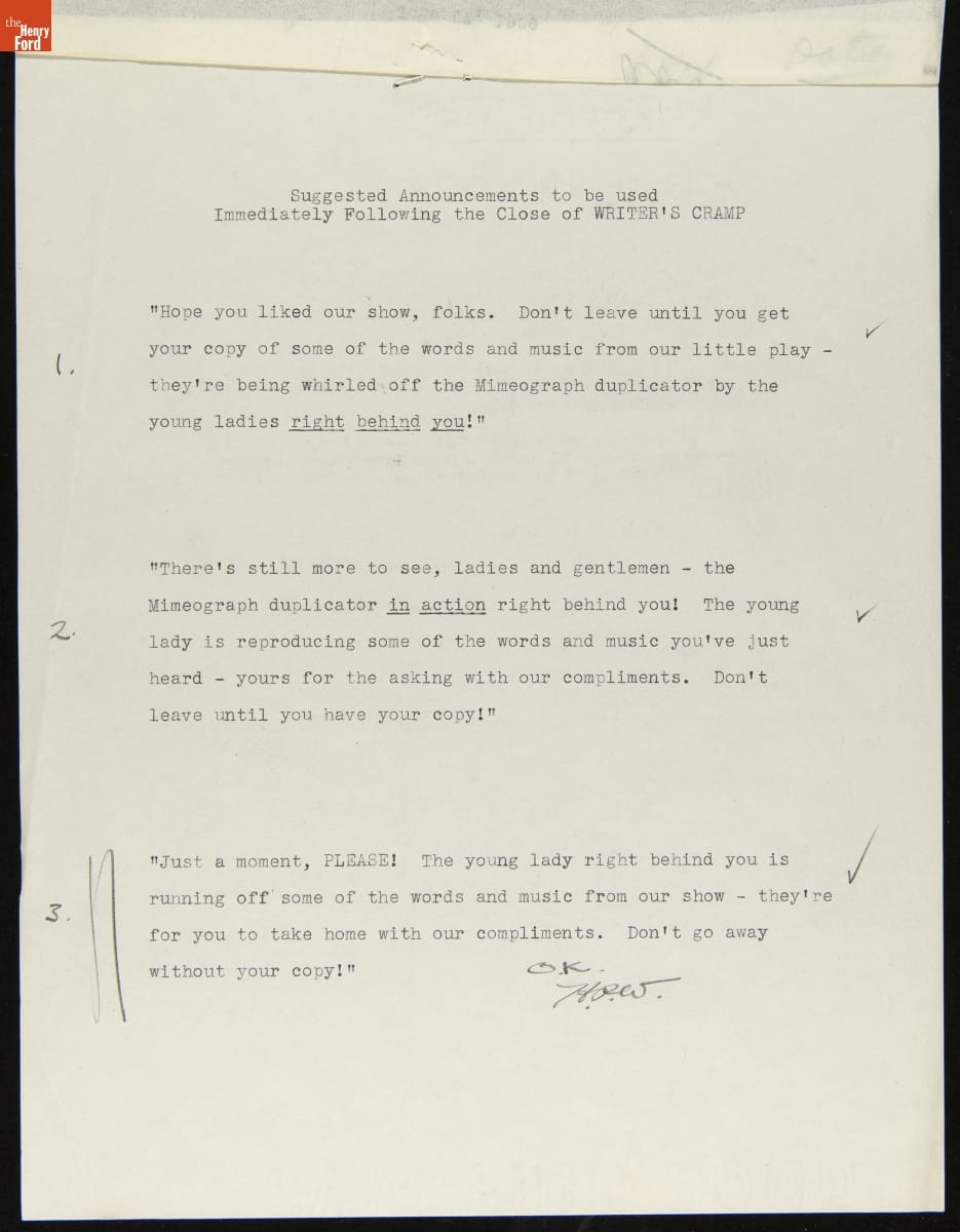 Memorandum regarding the A.B. Dick Company Mimeograph Exhibit at the 1939 New York World's Fair, June 27, 1939