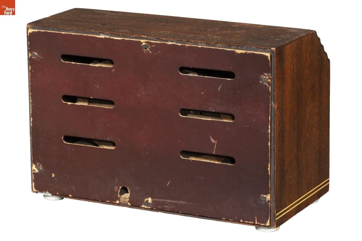 Industrial designer Peggy Ann Mack took over the design firm of her late husband, Gilbert Rohde, after his sudden death in 1944. She hoped to continue the firm's design work but despite having ample expertise, some clients didn't want to hire a woman. Commissions were scarce. But in 1945, Templetone Radio hired Mack to redesign showroom interiors and radio cases, including this Model E-514.