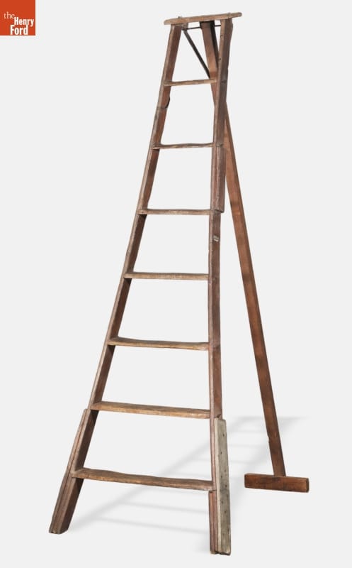 Luther Burbank (1849-1926), an American horticulturalist and author, gained a reputation for selective breeding that yielded more than 800 new fruits, vegetables, flowers, and other plants. He used traditional gardening tools in his plant research, like this ladder designed for use with fruit trees. With it he could climb into the limbs bearing fruit and clip buds or twigs for grafting.