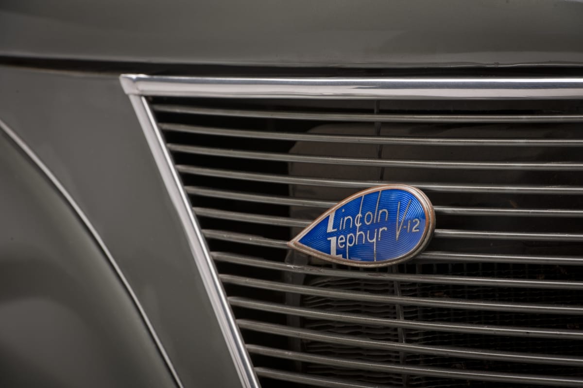 Hubs, in blue: LINCOLN / ZEPHYR On radiator, in gold letters on blue ribbed enamel: LINCOLN / ZEPHYR V-12 On trunk handle: LINCOLN / ZEPHYR / V-12