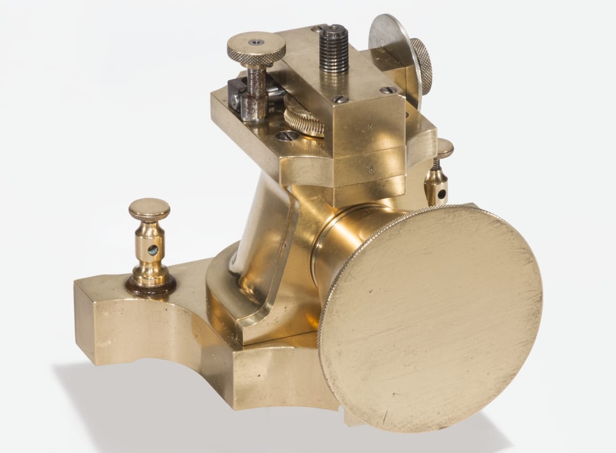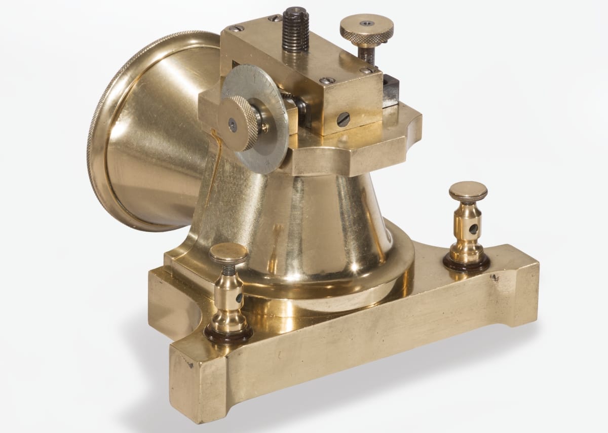 This tasimeter is a heat-measuring device, invented by Thomas Edison. On July 29, 1878, Edison travelled to Wyoming as part of the "Draper Expedition" to study a total solar eclipse along its path of totality. Mounting a tasimeter to a telescope, Edison conducted experiments to measure the energy levels of the sun's corona, amplified by the eclipse.