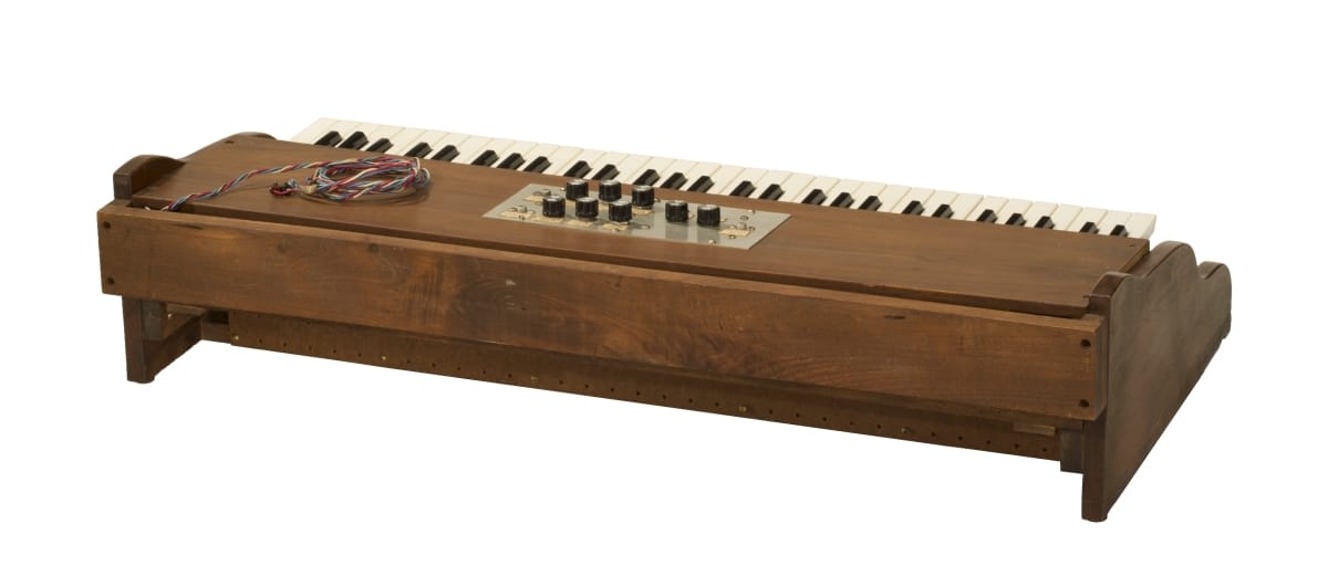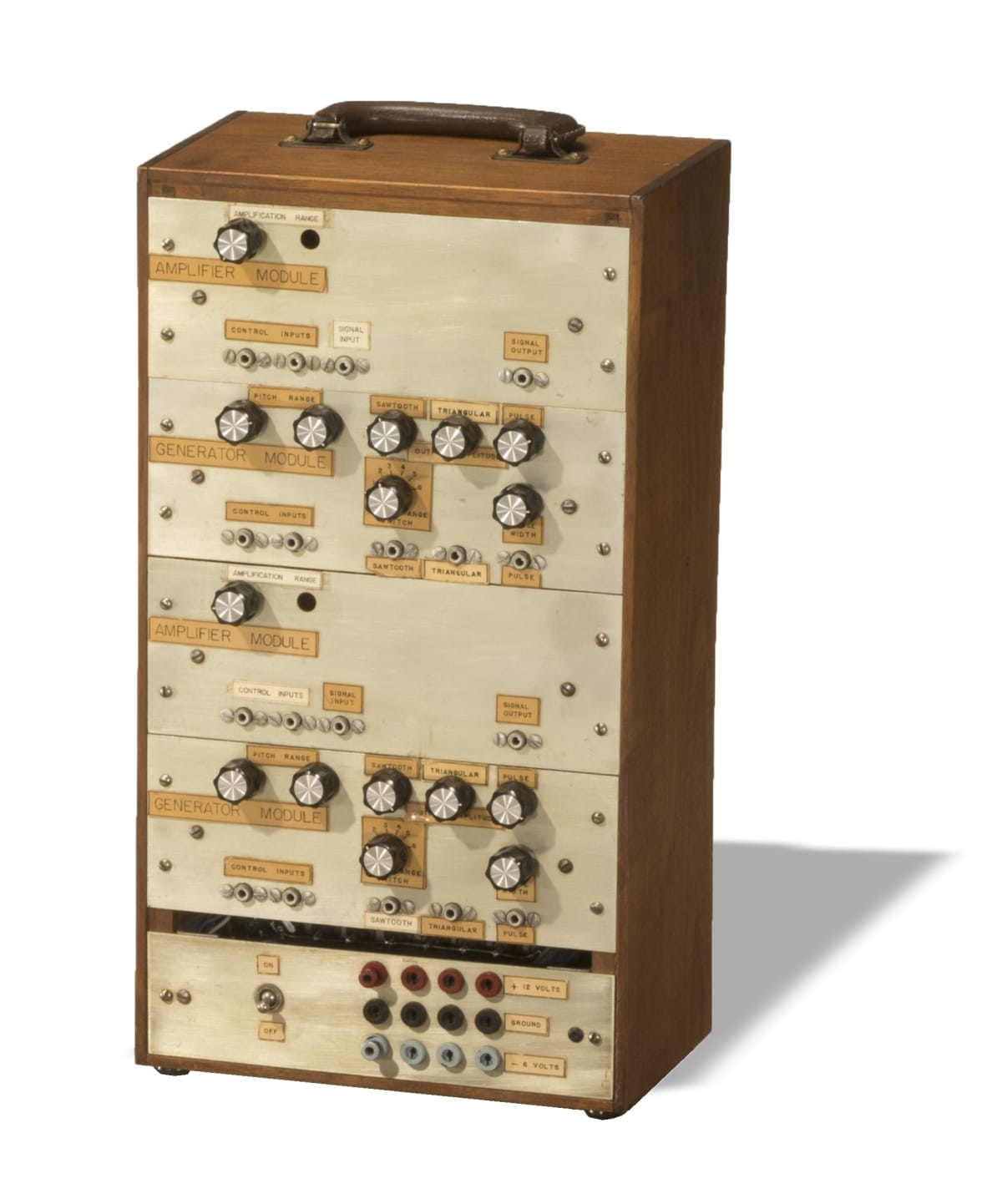 This prototype synthesizer--a collaboration between engineer Robert Moog and composer Herbert Deutsch--is a musical icon. Synthesizers create unique electronically produced sounds. Moog's solid-state synthesizer was musically superior and much more portable than earlier vacuum-tube-based systems. In 1968, the album Switched-On Bach introduced the Moog synthesizer to a wider audience. Synthesizers quickly became a mainstay of popular music.