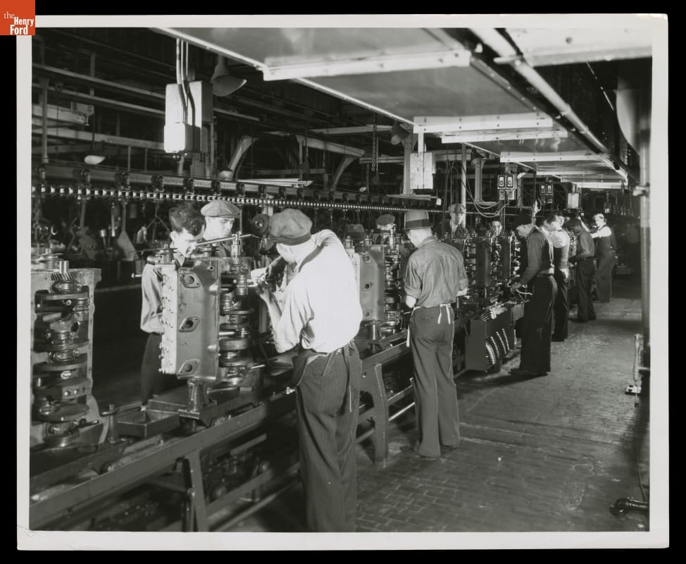 Assembling Ford V-8 Engines at Ford Rouge Plant, Dearborn, Michigan, 1934