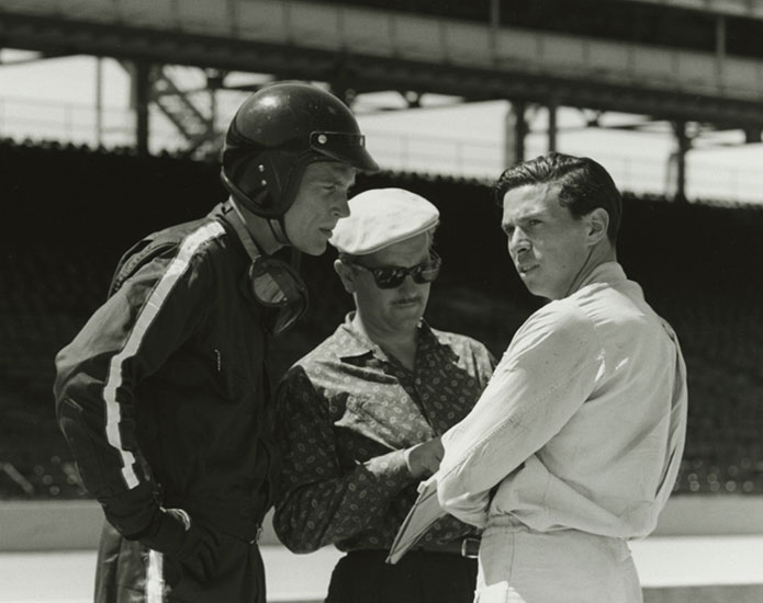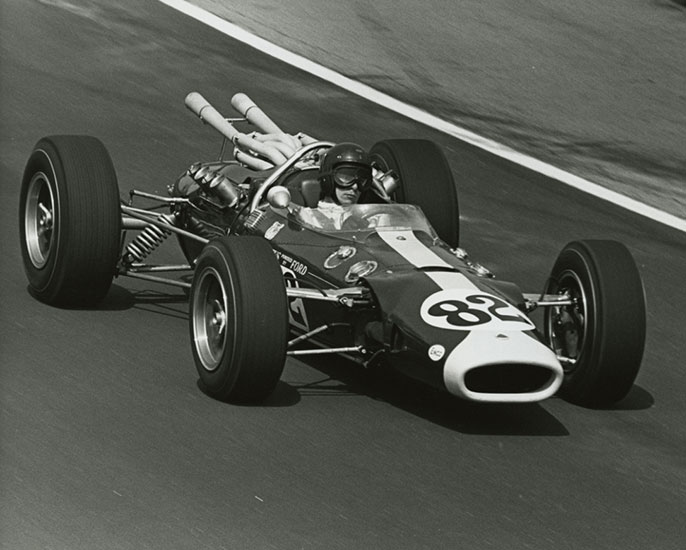 Gurney, Chapman and ClarkUnknown to Frey, he wasn’t the only one looking for opportunities at that 1962 race. Dan Gurney, a versatile California driver who’d competed in Formula One (F1) since 1959, made his Indianapolis debut in 1962. But even before he turned a wheel at the Brickyard (Indianapolis Motor Speedway’s enduring nickname, for the bricks that paved the track until 1961), he recognized the stagnant state of the cars on the field. Gurney had seen the most advanced race cars in the world in F1, and none impressed him more than those designed by Englishman Colin Chapman for Team Lotus. Chapman’s monocoque, rear-engine chassis, in which the frame and body were structurally integral, were winning Grand Prix events everywhere. Couldn’t they do the same at Indianapolis? How could the traditional front-engine roadsters hope to compete? Gurney bought Chapman an airline ticket and brought him to see the 500. Chapman quickly realized that they were on to something.