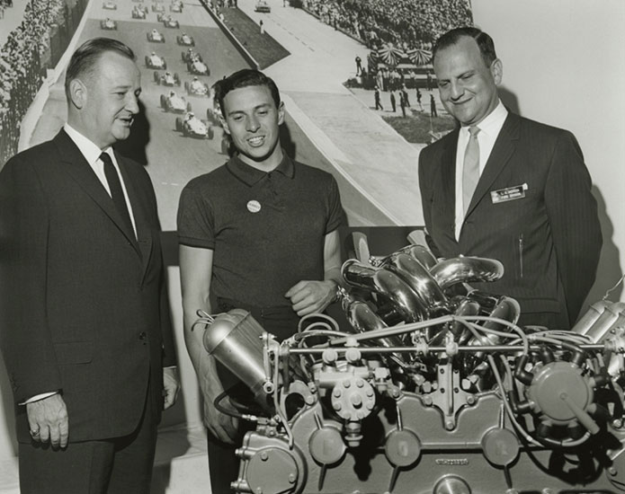 By the early 1960s, though, times had changed. Ford was in the hands of a new generation personified by Henry Ford II and Lee Iacocca. They recognized that young baby boomers craved excitement, and nothing added excitement to a car company like running—and winning—major races. Ford kicked off a “Total Performance” campaign that ultimately yielded wins in sports cars, stock cars, drag racers and rally cars. But the Indianapolis 500 could be the greatest prize of all. Ford executive Don Frey traveled to the 1962 race looking for a way in which the Blue Oval could put its stamp on Indy. On the drive back to Dearborn, he convinced himself that a race engine was the answer.