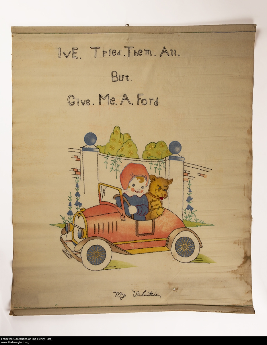 This wall hanging clearly states the maker’s opinion, “I’ve Tried Them All, But Give Me a Ford.”