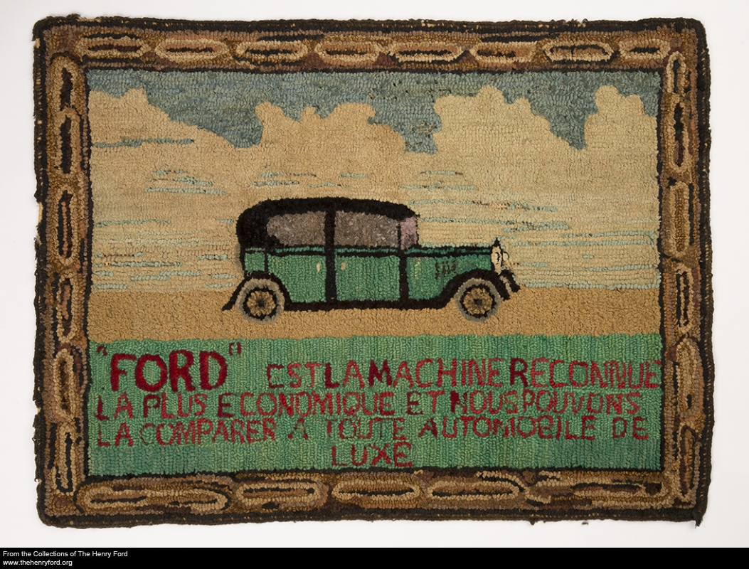 Of course, not all gifts to Henry Ford were sent without any expectation of recompense. In the case of a hand carved mantel clock featuring an image of Henry Ford, the accession file shows several letters being exchanged between the donor and H.R. Waddell, Henry Ford’s personal assistant. As one goes through the correspondence, it turns out that creator of the clock was hoping that Mr. Ford would be so impressed with his woodworking capabilities, that he would find an opening for the Austrian wood carver in one of the North American Ford factories. The final reply from Mr. Waddell states with regret that there were no positions available, but that the gentleman’s name would be kept on file. In another instance, a Canadian woman created a beautiful rug with a Ford automobile as the subject and sent it to him hoping he would purchase it from her for five dollars. According to correspondence found in the accession file, the donor, a resident of Quebec, Canada, received the reply that there was no interest in the rug. She in turn replied that in addition to being very disappointed, she was too poor to afford the return postage, she advised that the rug be "thrown away”. On 22 September 1933 a letter was sent to the donor thanking her for the "gift" that would be placed in the museum’s collection.